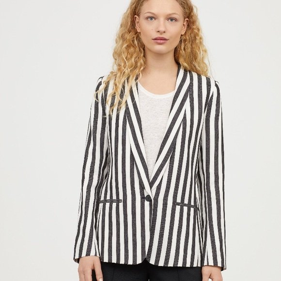 h&m linen-blend striped jacket blazer - size 4