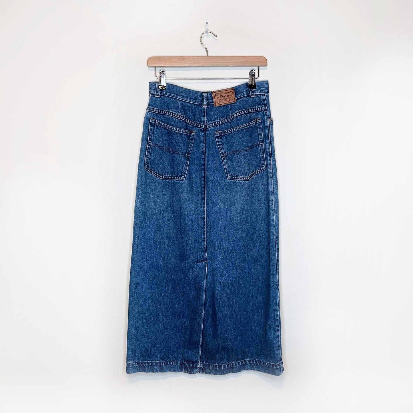 vintage 90's polo ralph lauren high rise dungarees denim skirt - size xs