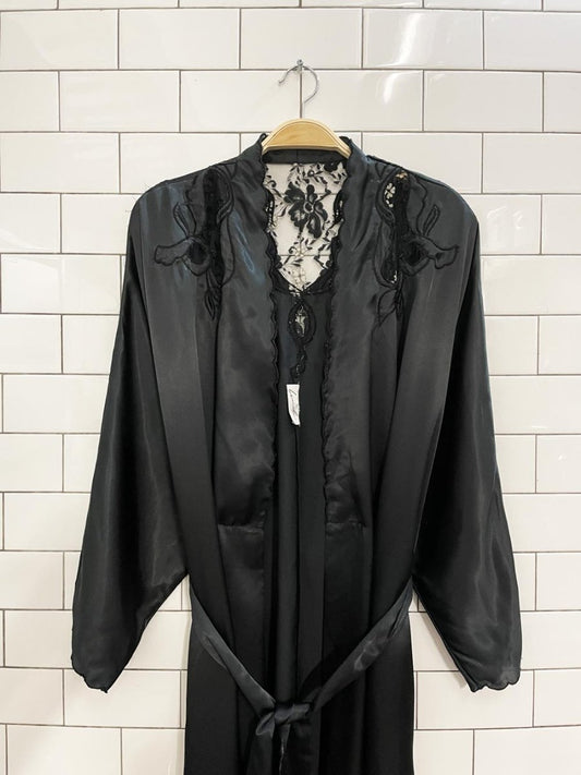 vintage amour de nuit 100% silk robe with velvet trim