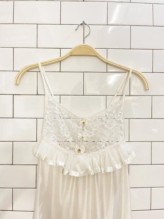 vintage 80s la vie en rose lace-trim satin nightgown