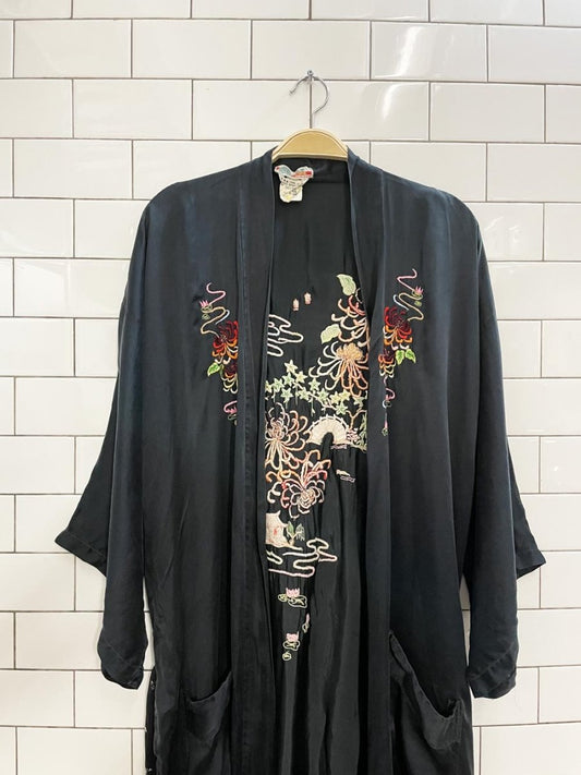 vintage 60s health 100% raw silk embroidered robe