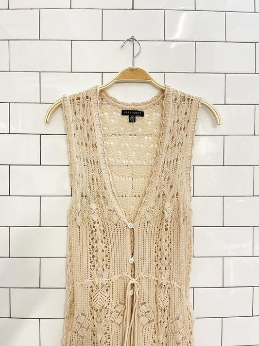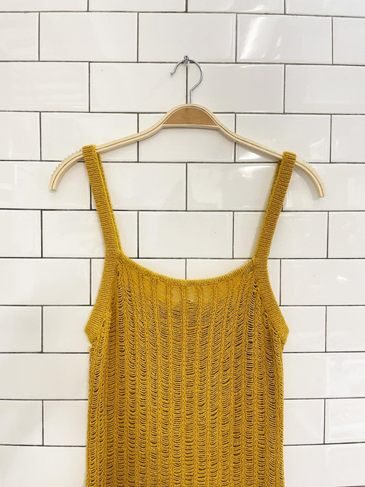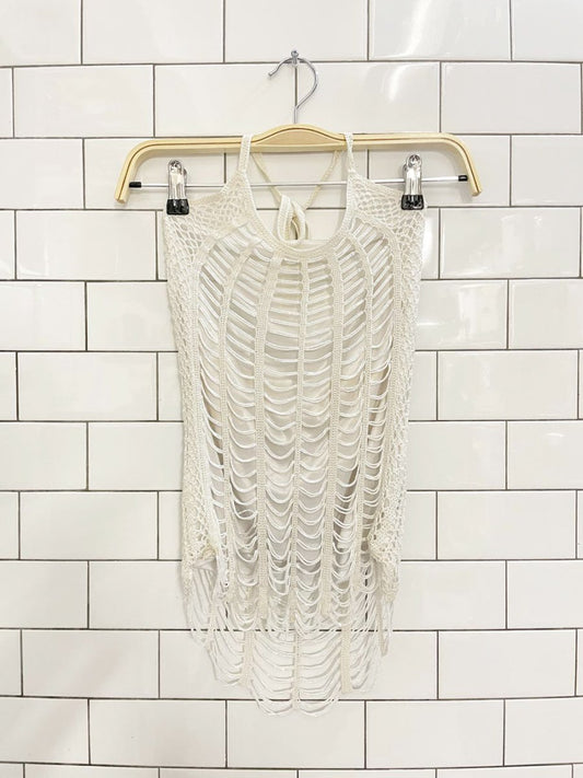 vintage 90s ll european ramie-cotton crochet knit vest mini dress
