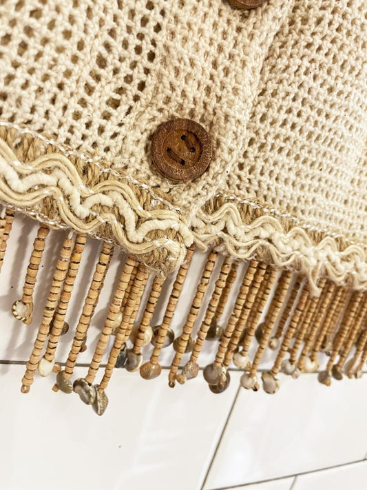 vintage 90s pelican cove crochet knit beaded fringe crop tank | made in India