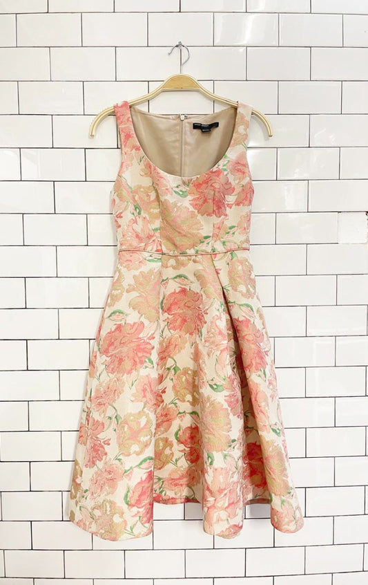 nwt h&m wool-blend gold brocade pleated strapless cocktail dress