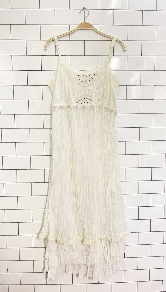 moon river marble ruffle layered midi dress