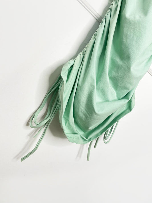 y2k jessica strapless ruched midi wrap dress