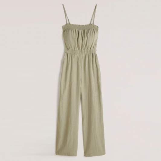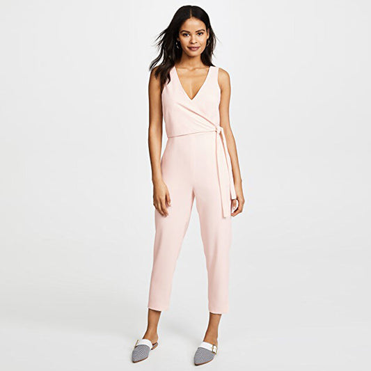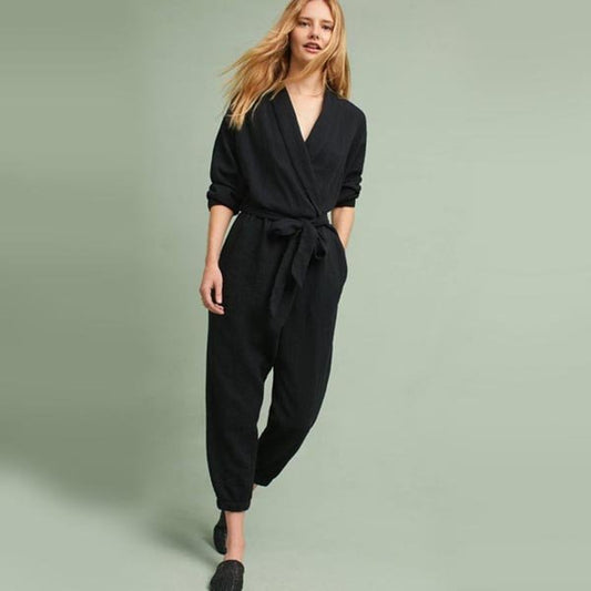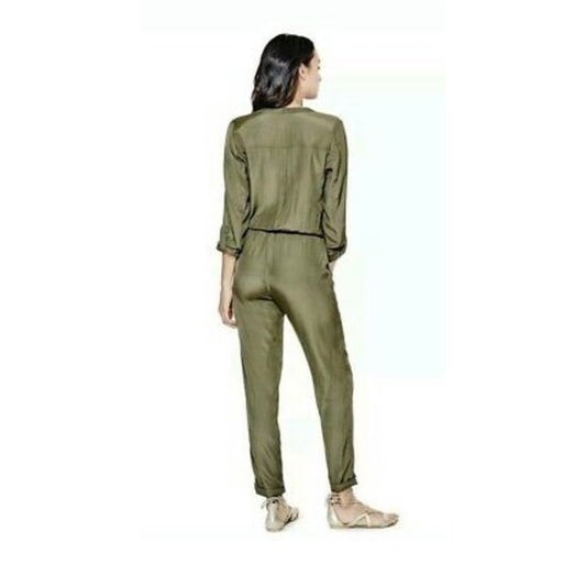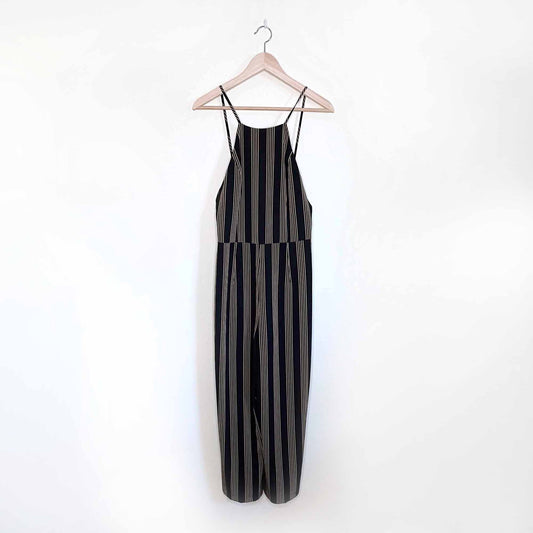 oak + fort v-neck tie waist wide leg evening flowy jumpsuit - size small