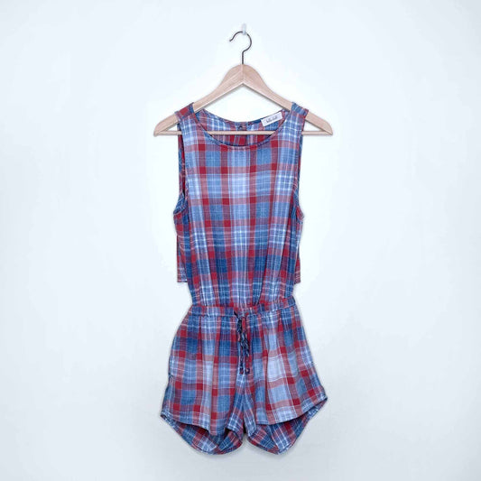 uo urban outfitters emerson purple gingham ruffled jumpsuit - size xs