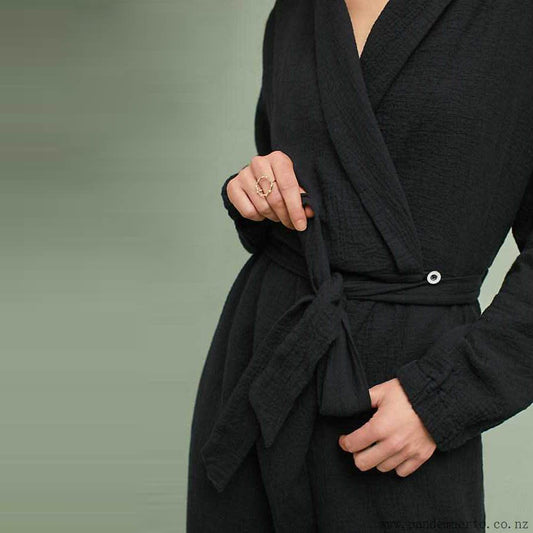 hei hei benna wrap black gauzy cotton jumpsuit - size xs