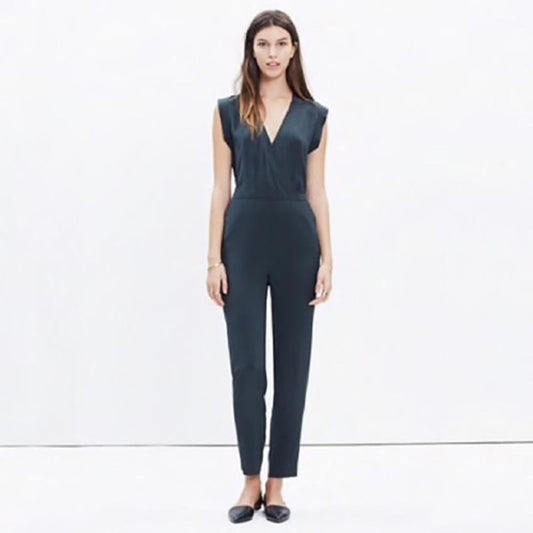 nwt madewell yates silk sleeveless faux wrap jumpsuit - size 12