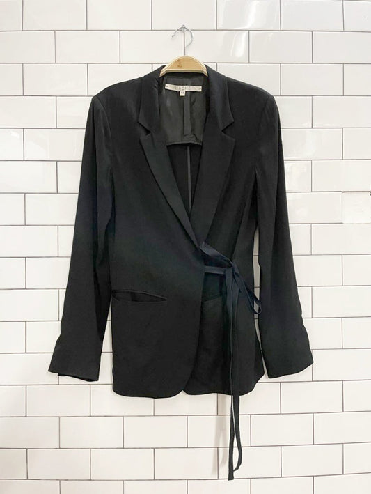vintage 80s etienne aigner 100% wool lining leather detail double breasted trench coat