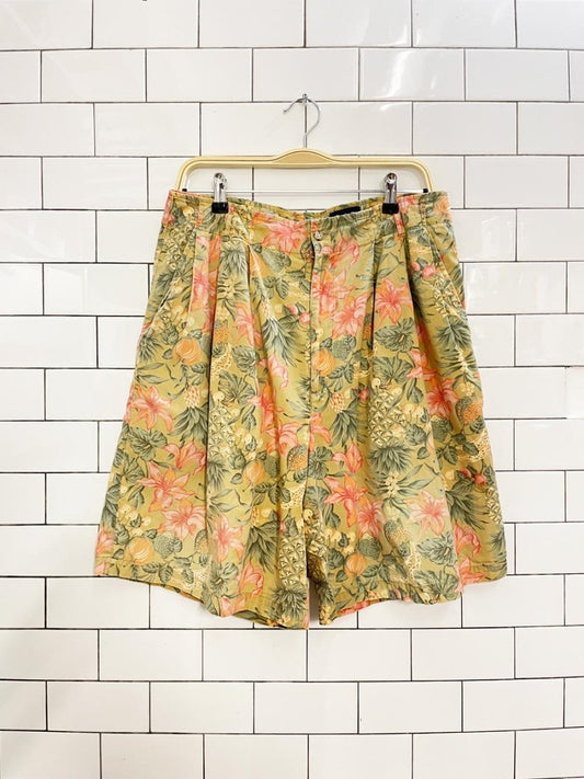 vintage vicjoy gold 100% wool plaid pleated long shorts