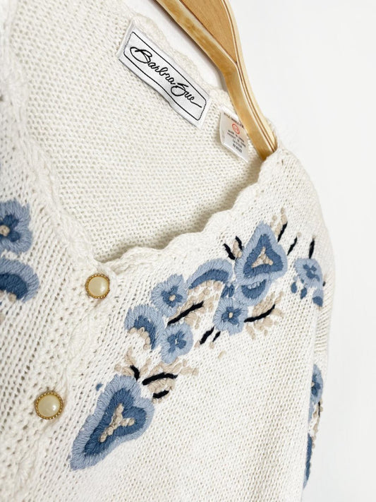 vintage 00s christopher & banks hand-embroidered mountain scene knit cardigan