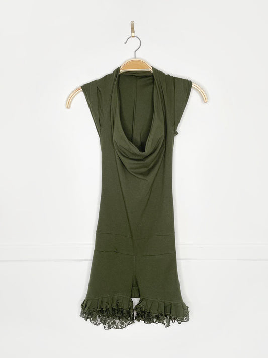 nwot the fairies pajamas cowl neck lace ruffle hem hooded romper
