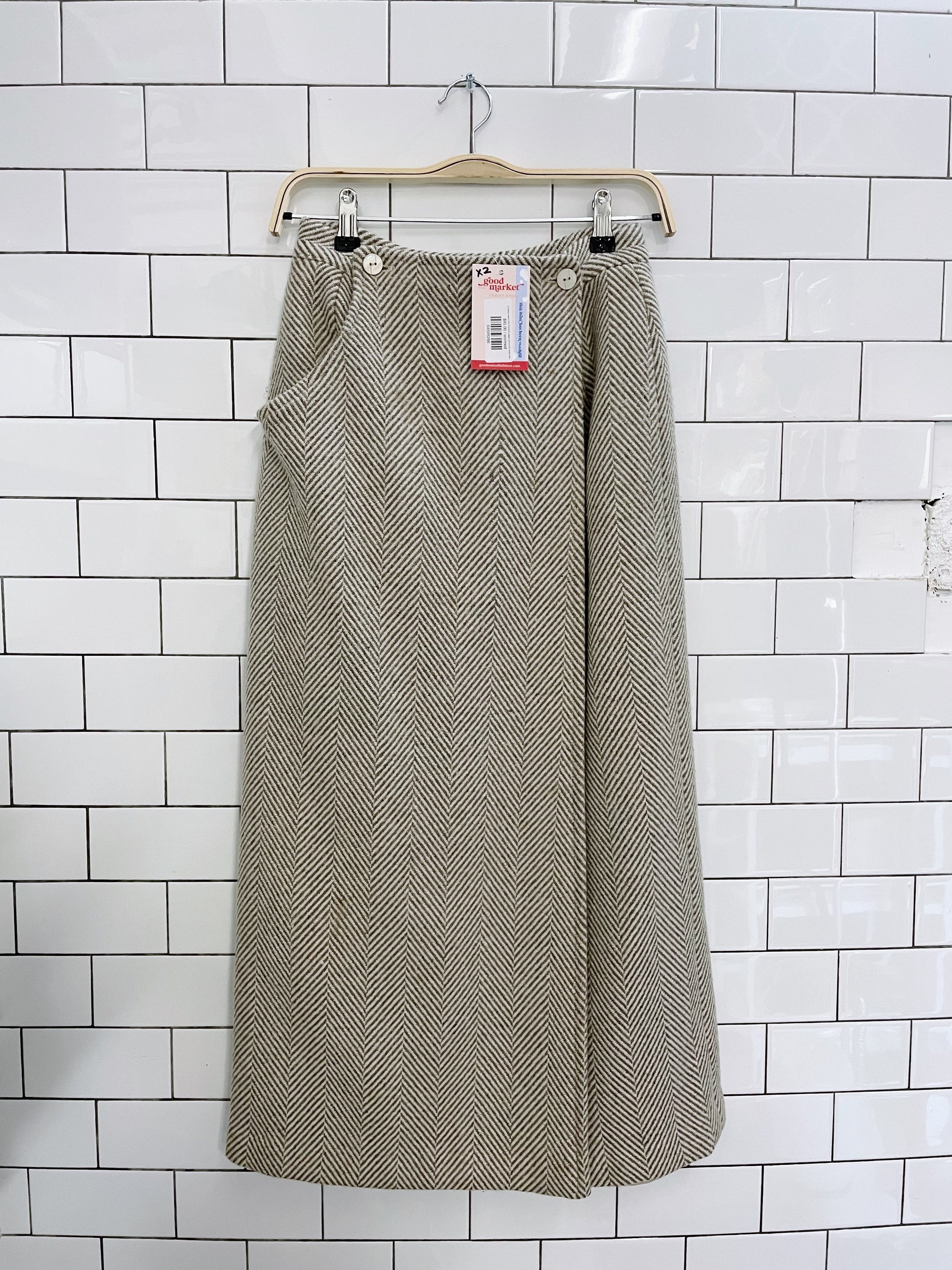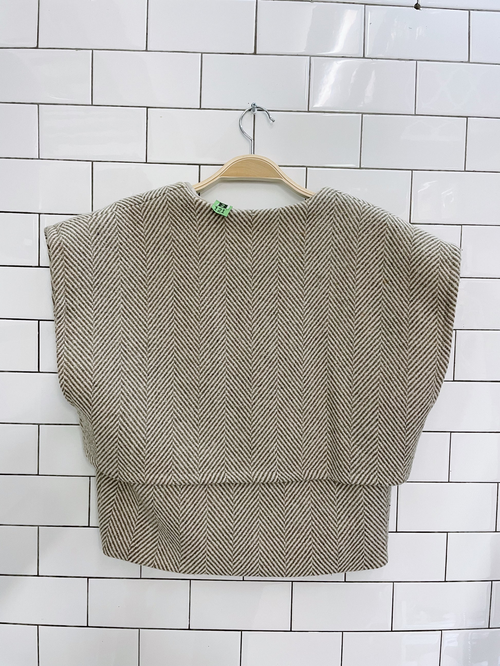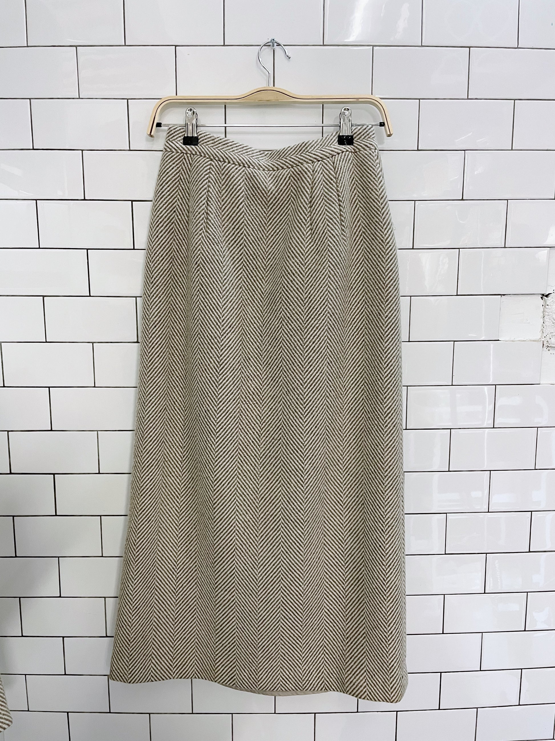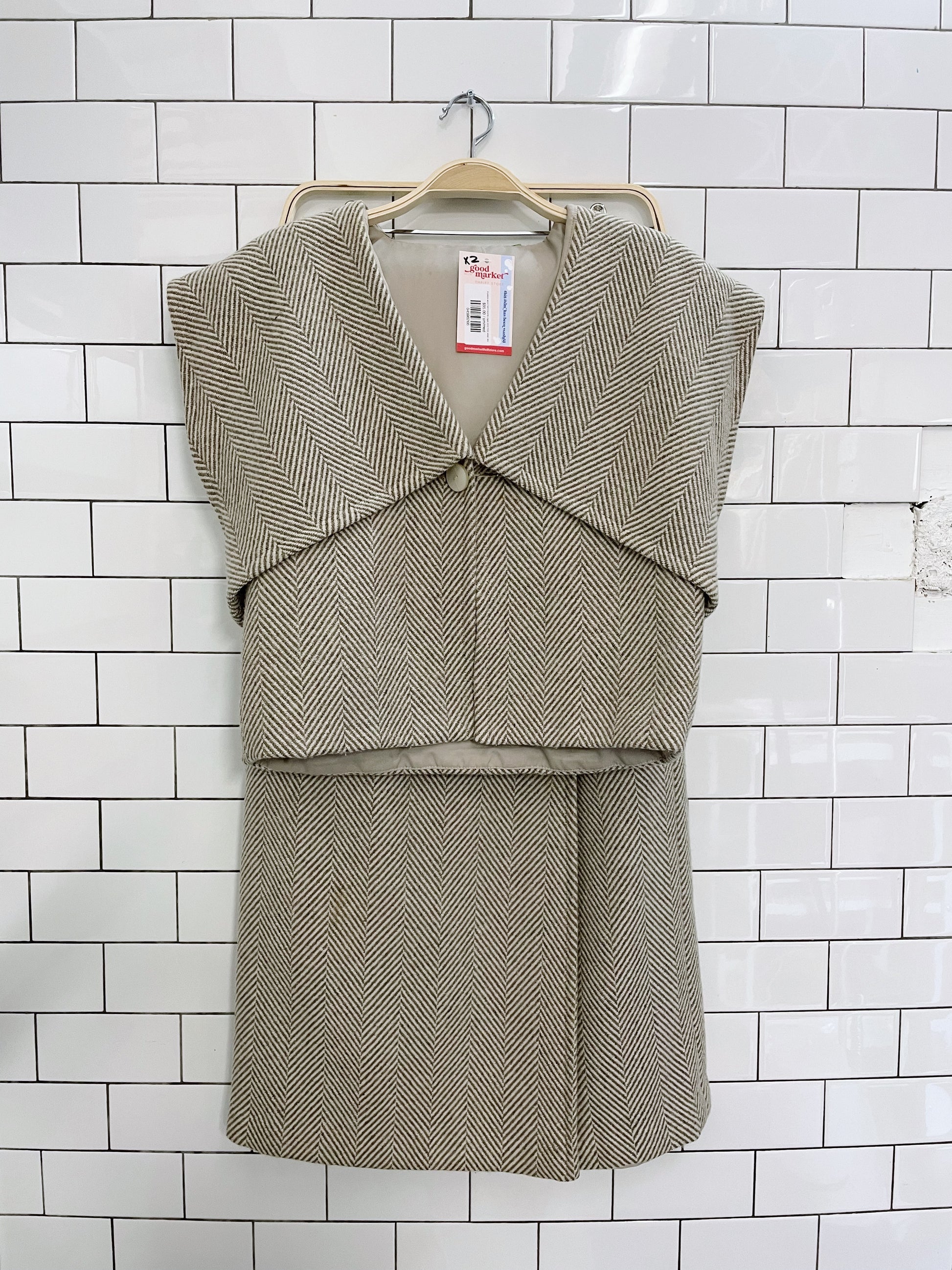 2-piece wool herrinbone cape and midi wrap skirt set