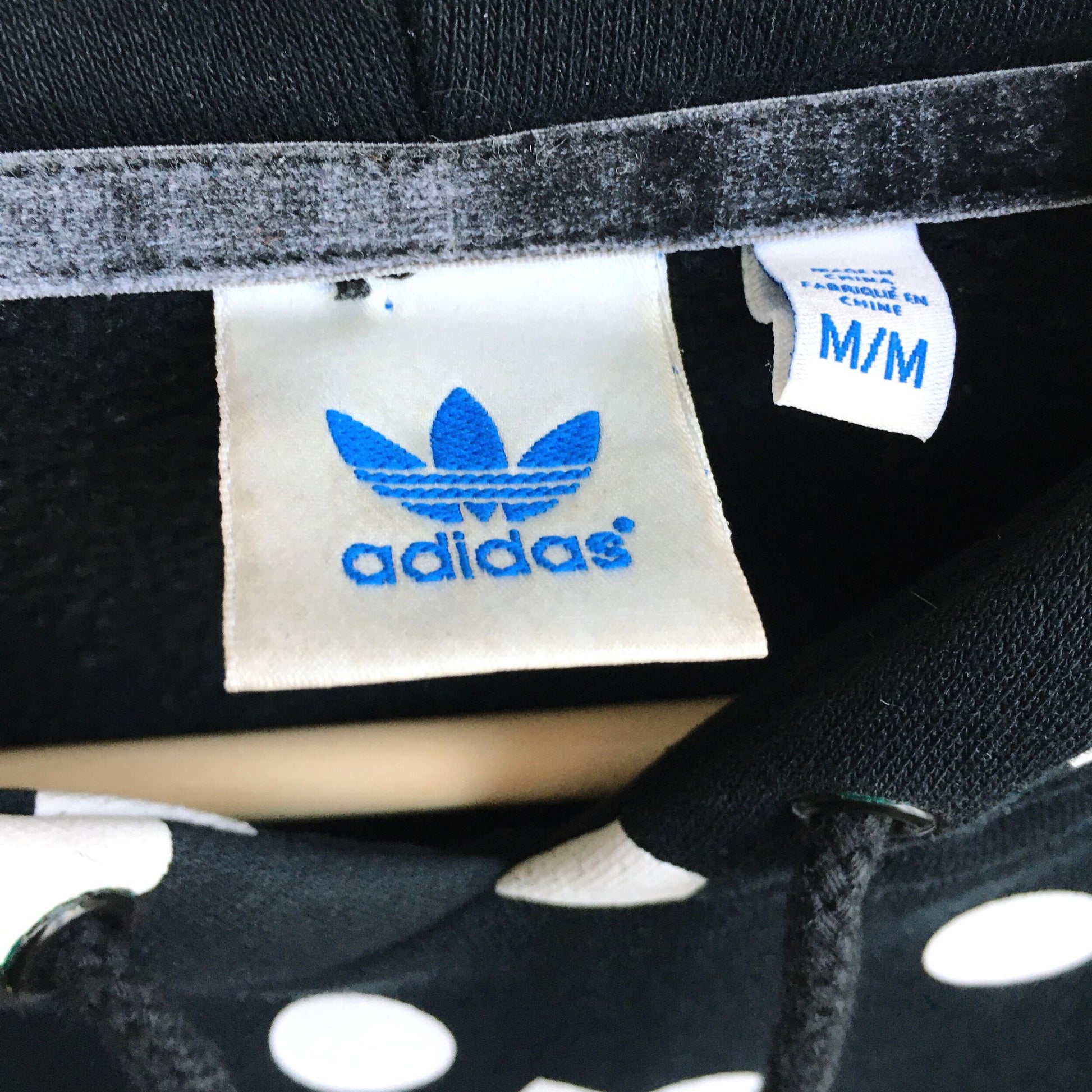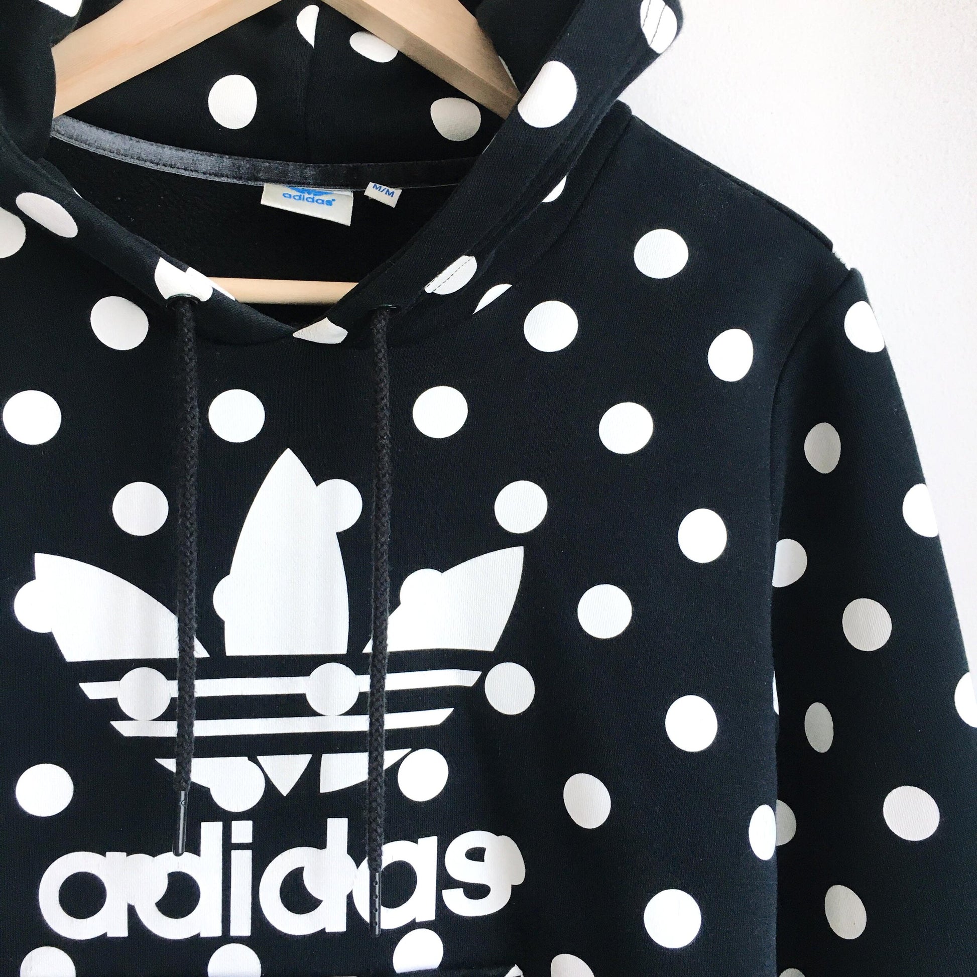 Item Description: Snuggle up in this cozy adidas hoodie - featuring all over polka dots, joey pocket, drawstring hood and self crop hem. 70% cotton 30% polyester