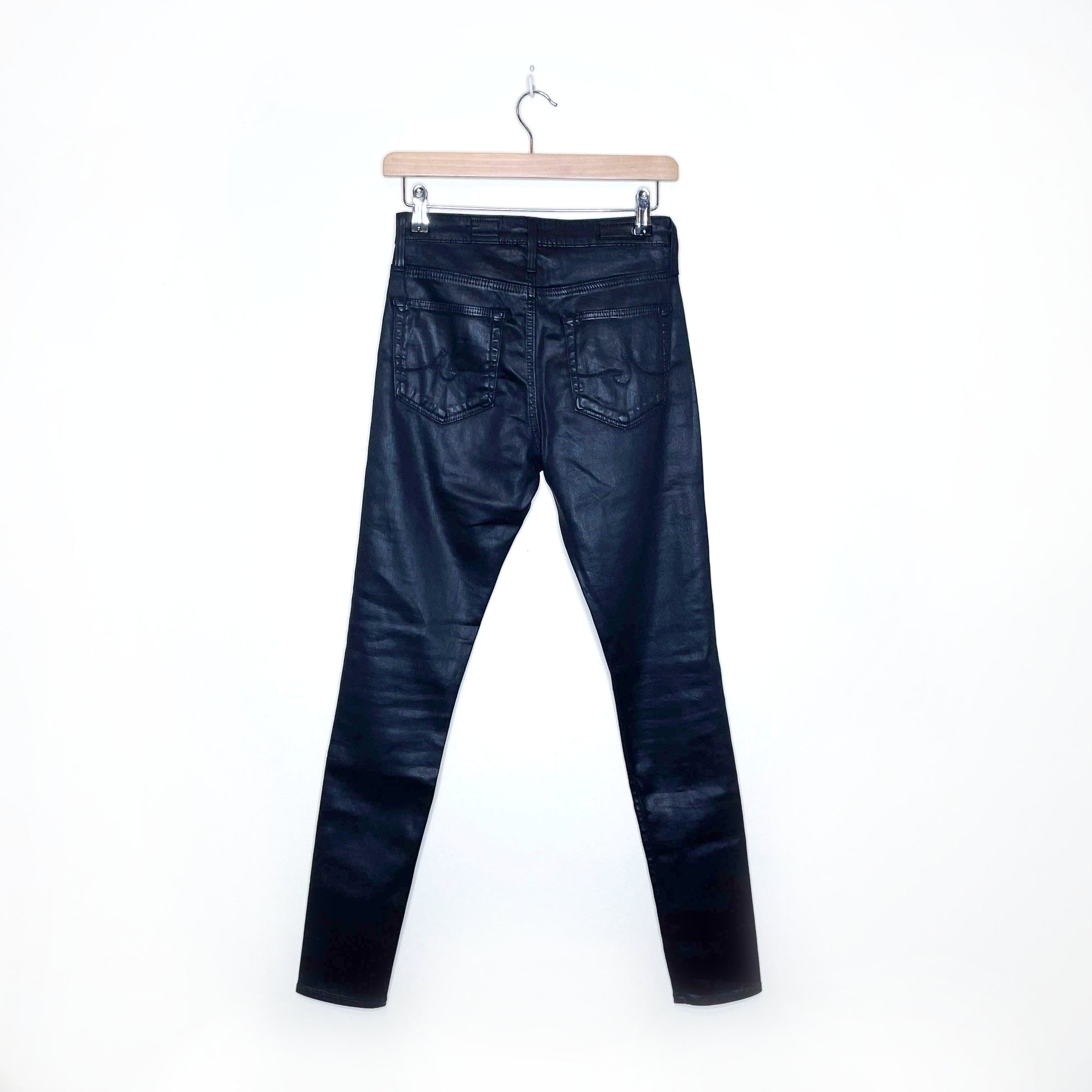 ag farrah high rise skinny dark blue leatherette pants - size 25