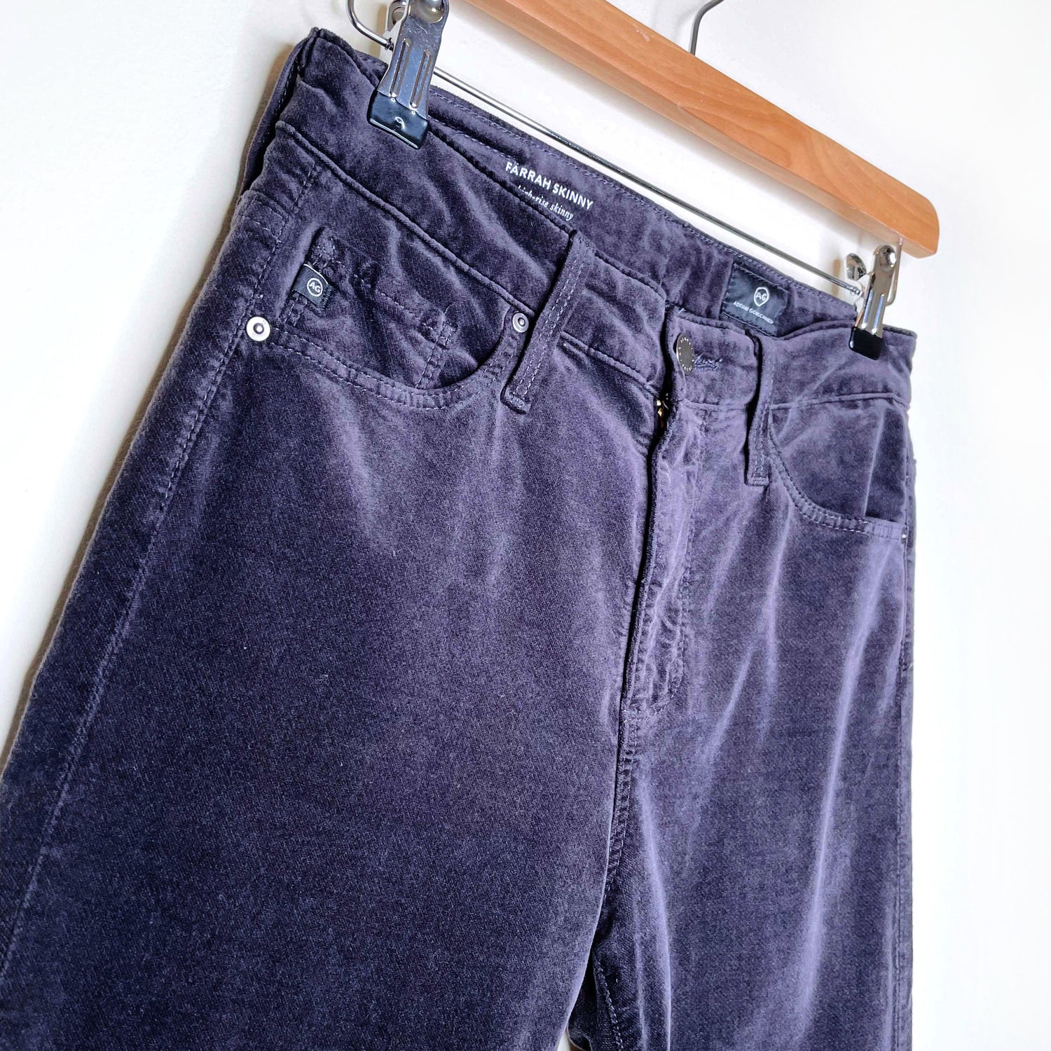 Item Description: The Farrah Skinny for women features a deep black hue, cut with a flattering high-rise waist and a skinny fit through the leg for a refined silhouette. This women’s pant is crafted in 7.5 oz. Opulent Stretch Velvet for an ultra-comfortable and incredibly soft wear. The fabrication features Modal, a natural fabric that gives the same impression as your softest loungewear, with the durable and luxurious sophistication you expect from AG. 54% cotton 35% modal 8% polyester 3% polyurethane