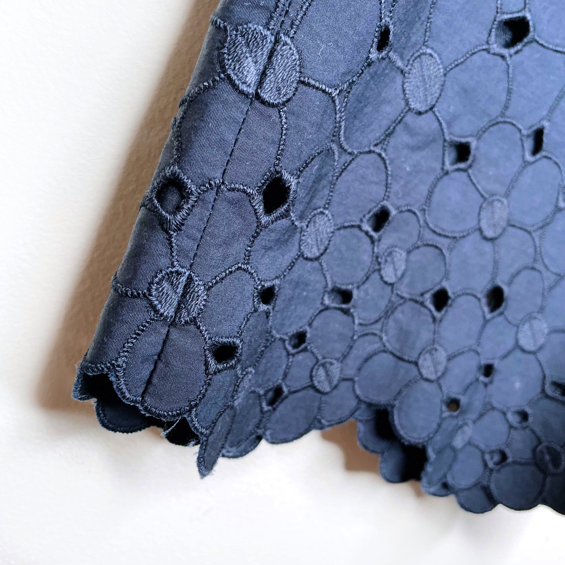 Item Description: The perfect transition piece, this lightweight trouser from Akris Punto features a high rise, side zip closure, and cropped hem with laser cut, embroidered eyelet flowers. 100% cotton