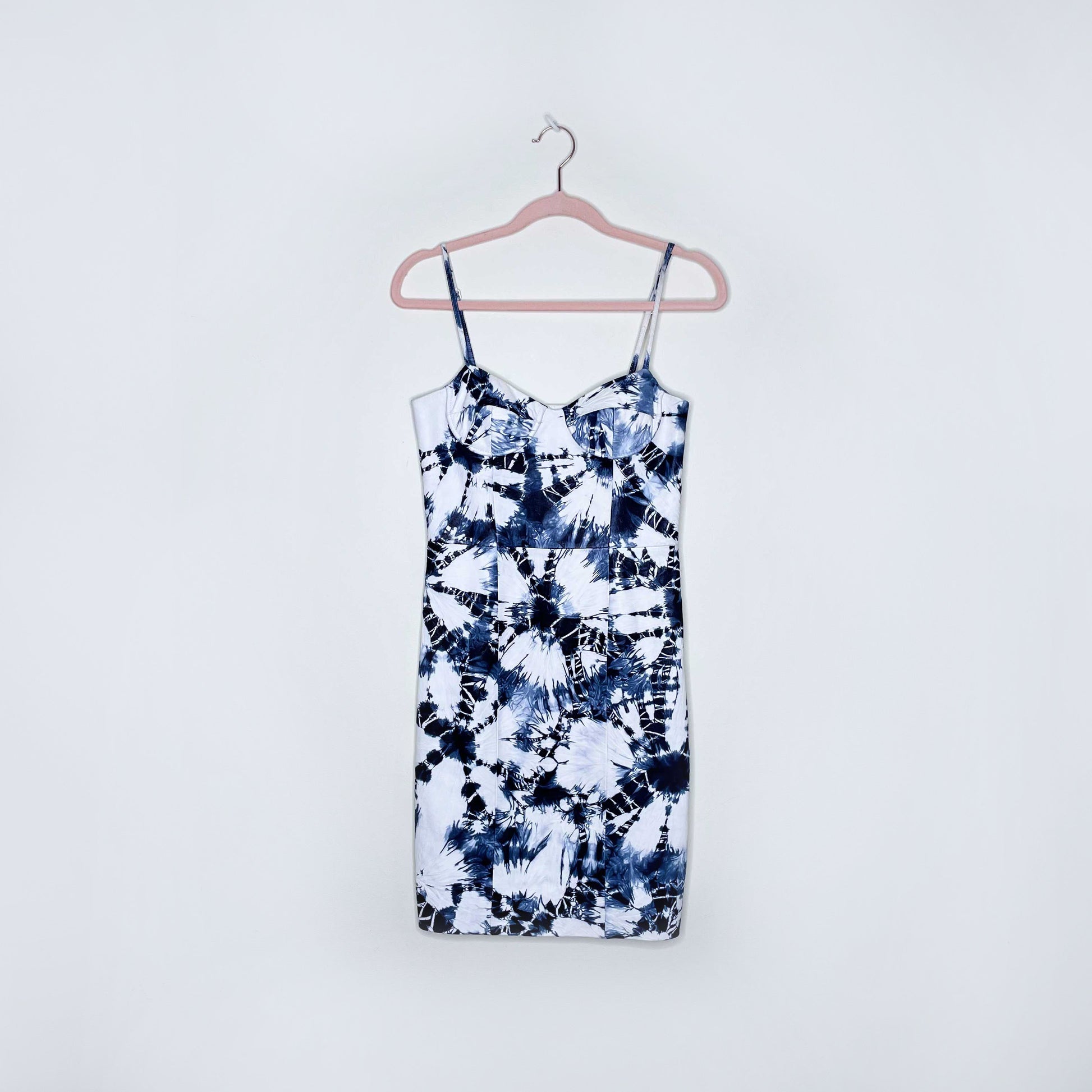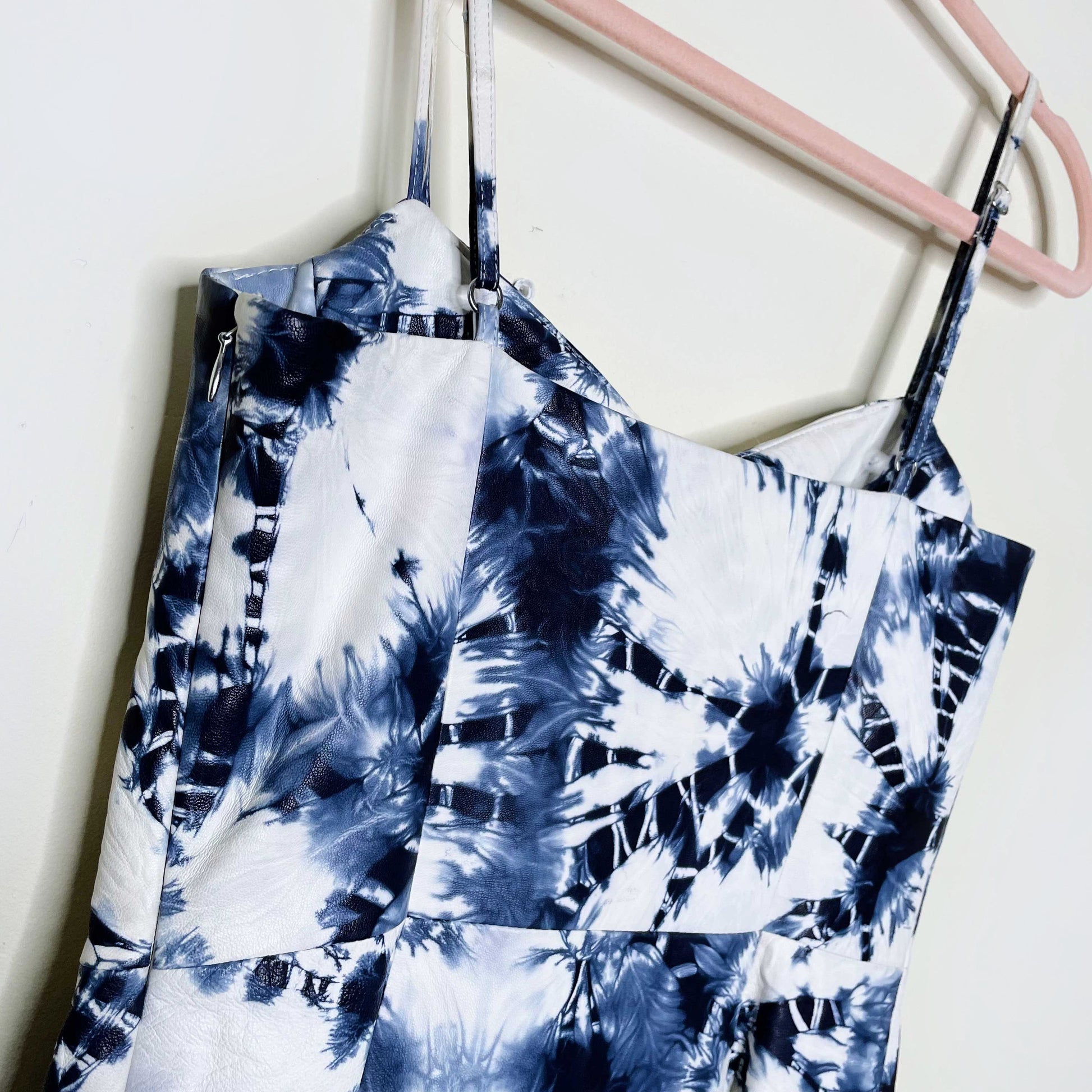 Item Description: This stunning dress from Alexander Wang is screaming for a party - with a blue and white tie dye aesthetic and padded, bustier top - this gal is ready to go. Zipper closure. 100% lambskin leather