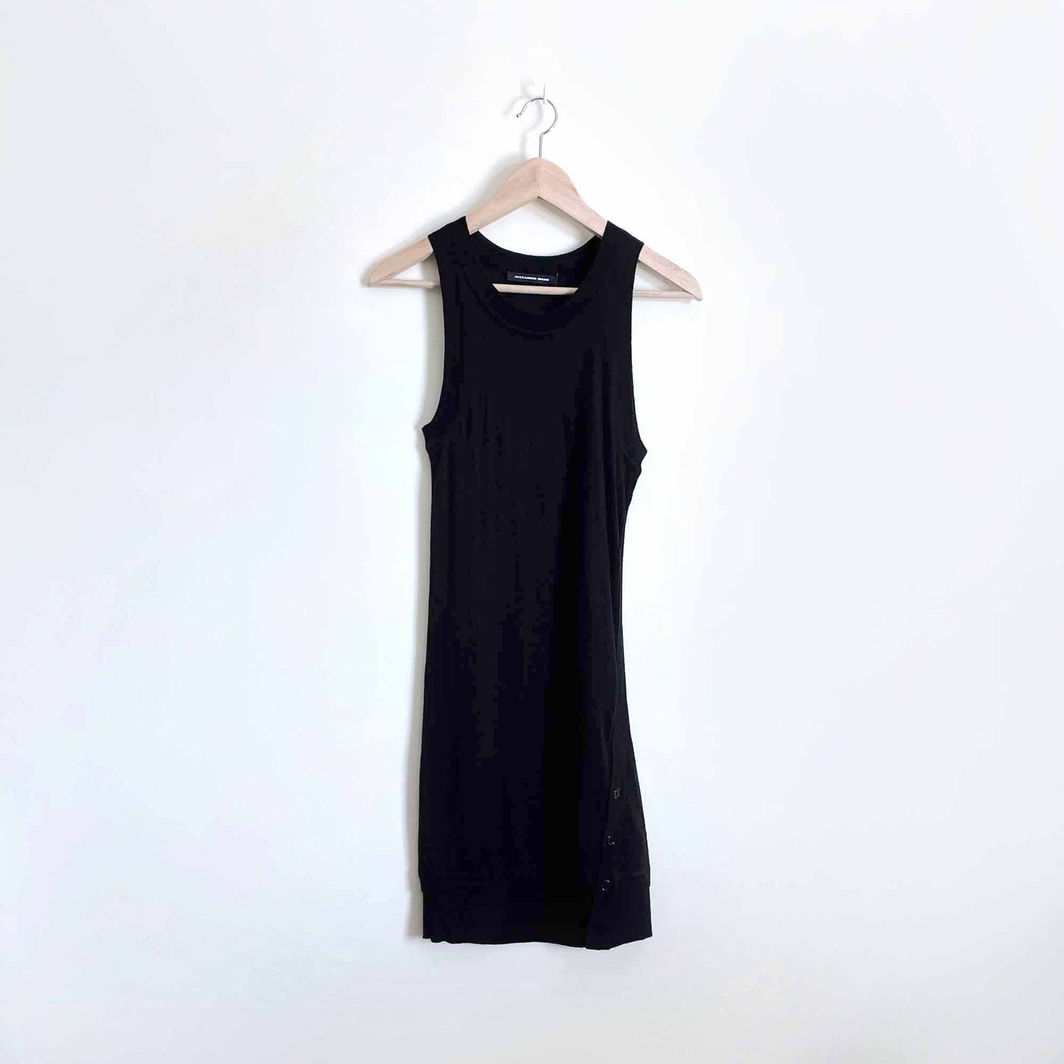 Item Description: This lightweight tank dress from Alexander Wang features a side button hem - wear open with combat boots and a denim jacket for a chic spring look. 50% wool 50% acrylic