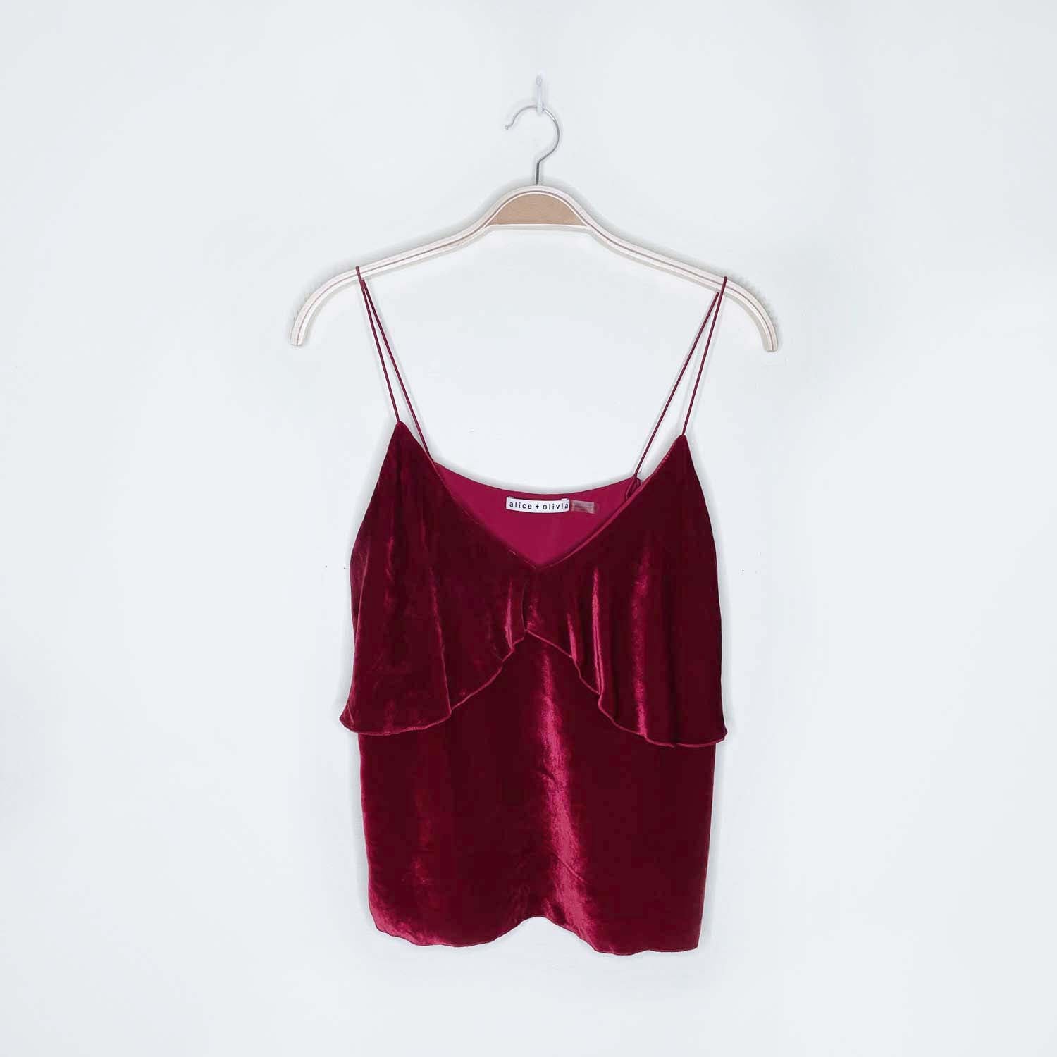 alice + olivia vanessa silk-blend red velour tank top - size small