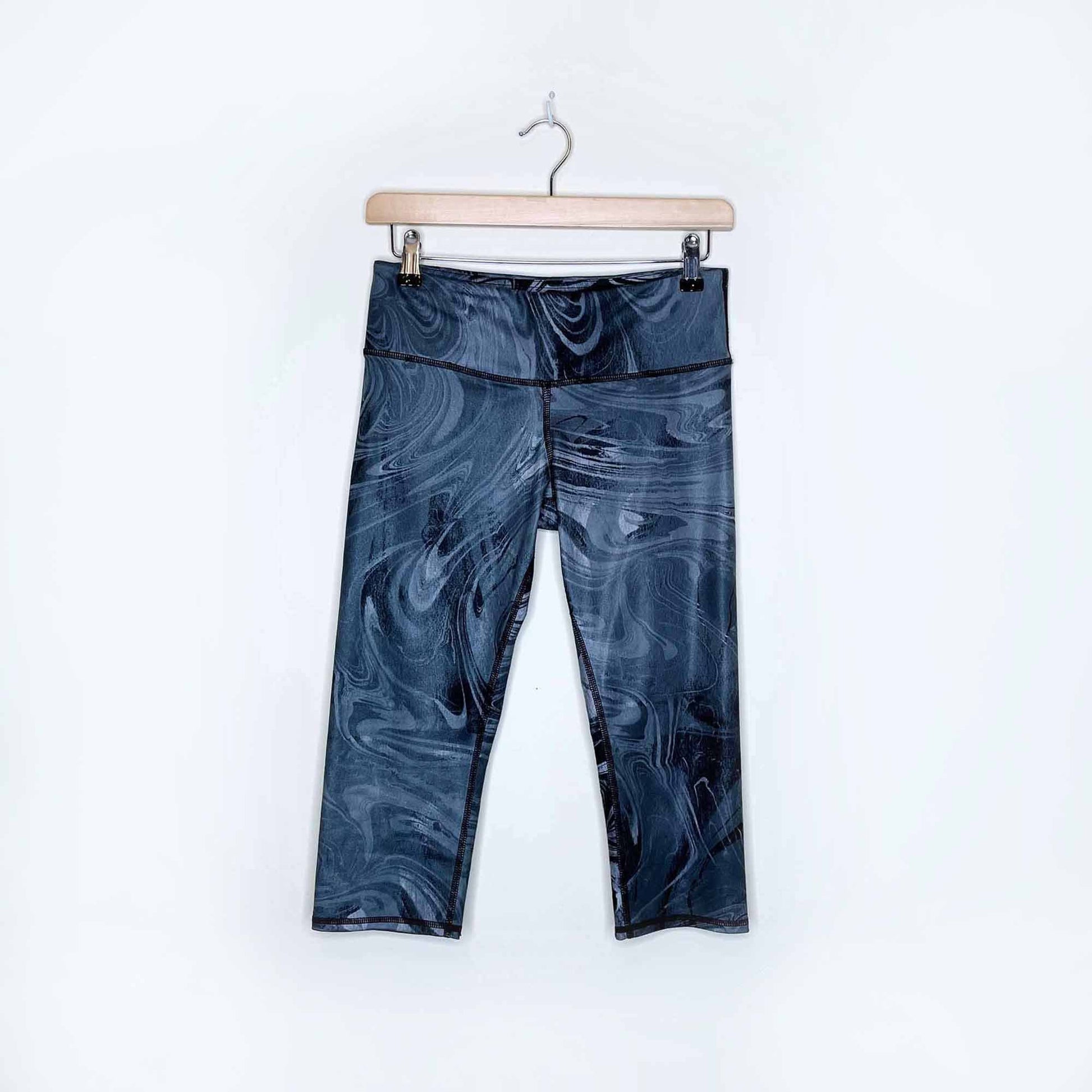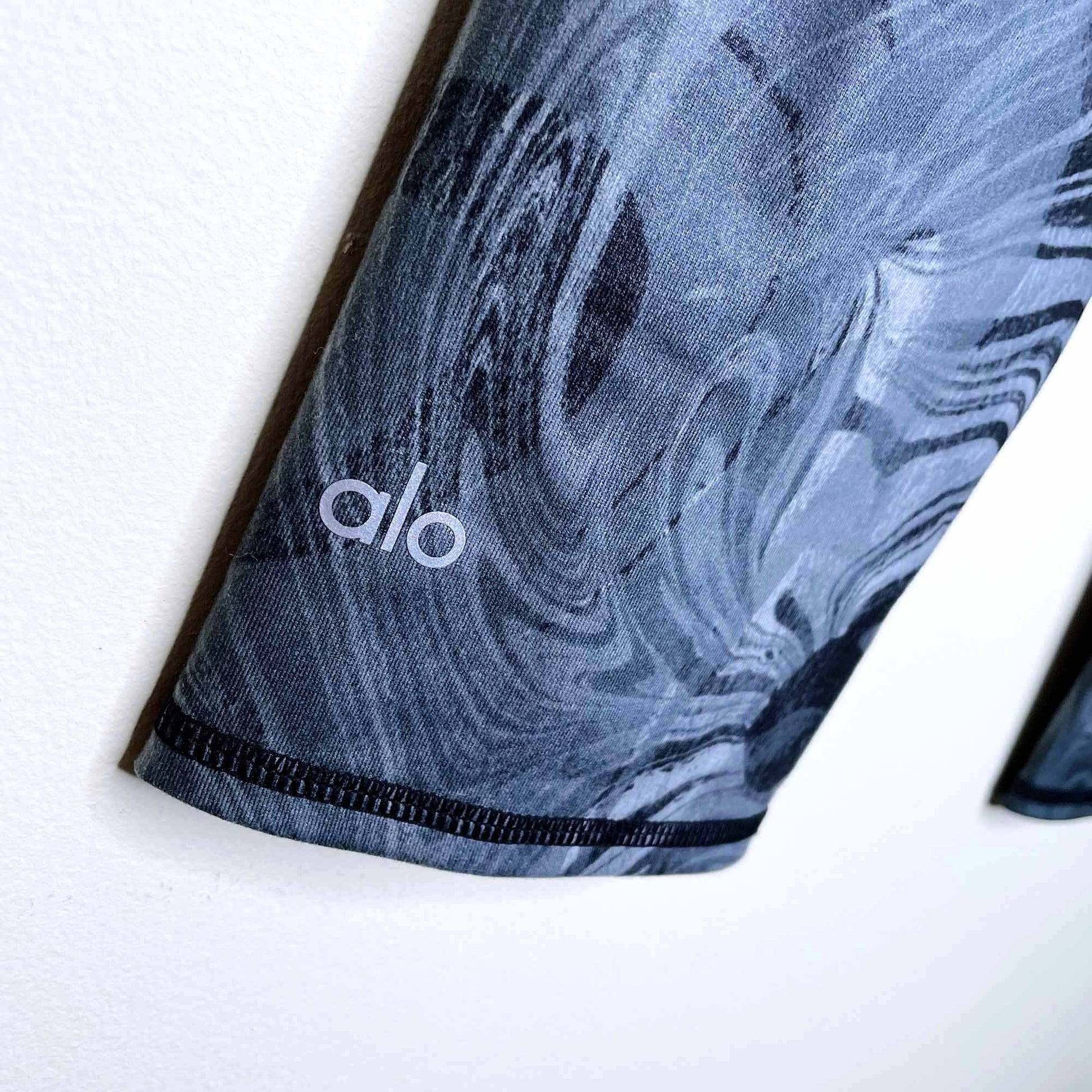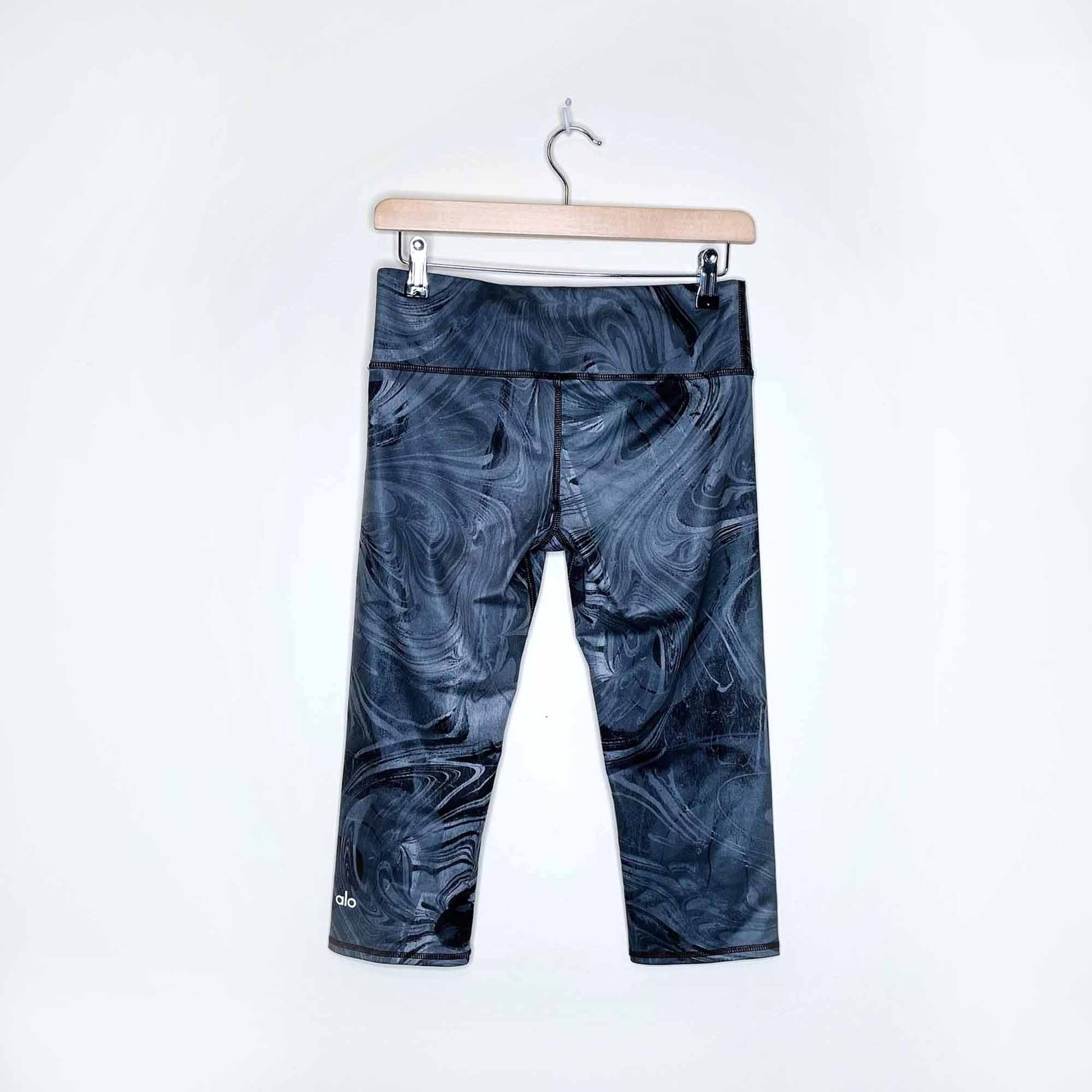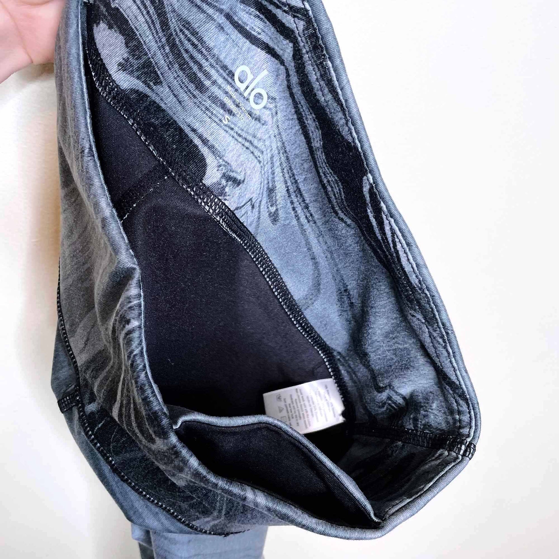 alo yoga airbrush cropped leggings in black marble - size 6
