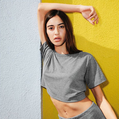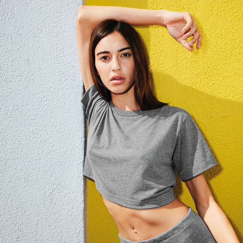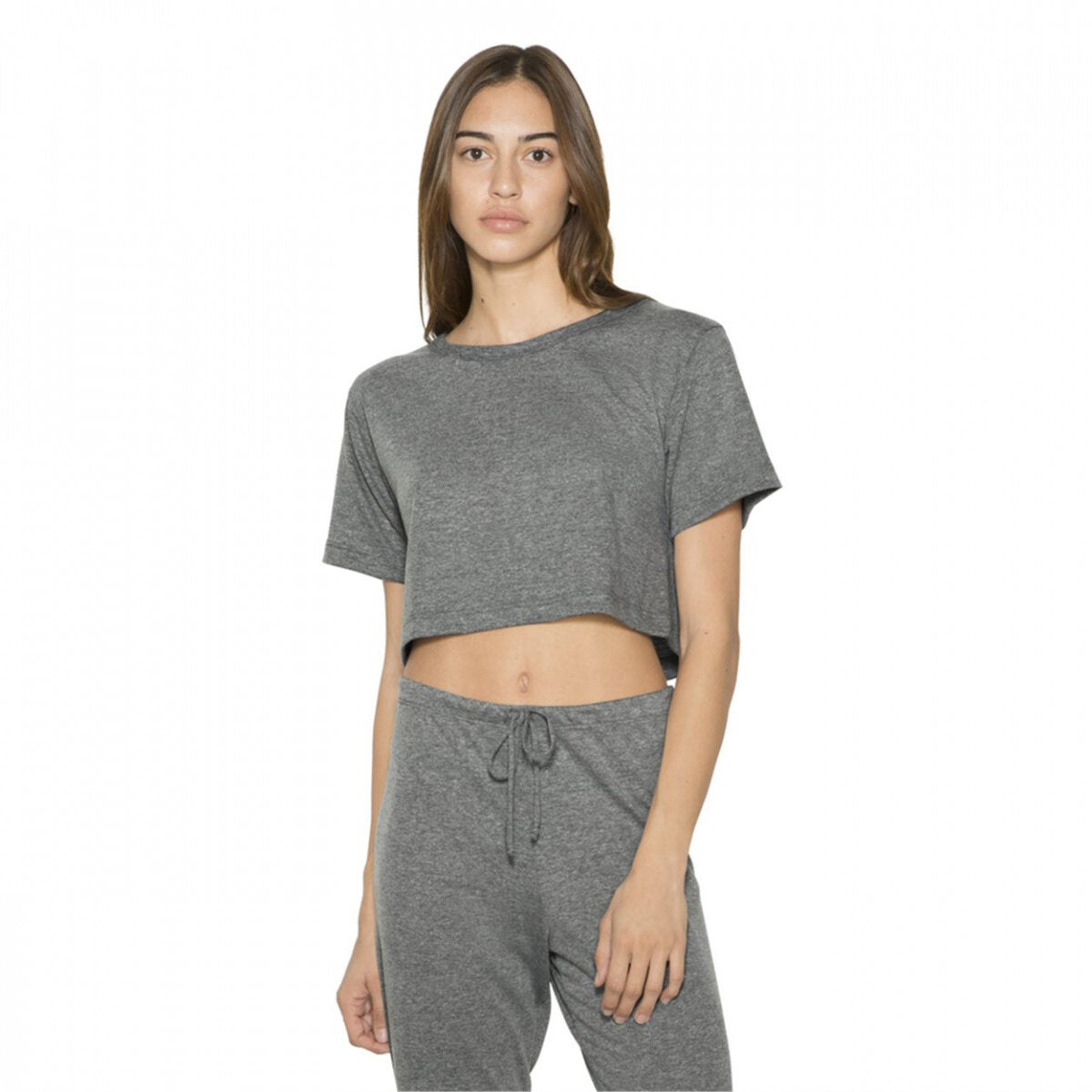 Item Description: The classic track tri-blend gets cut short in this cute crop style. 50/25/25 50% polyester 25% cotton 25% rayon