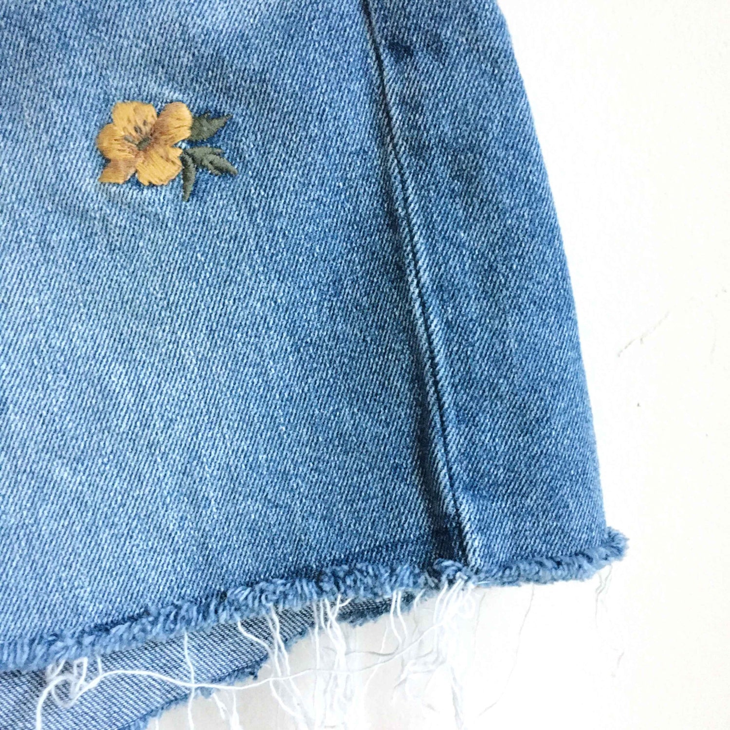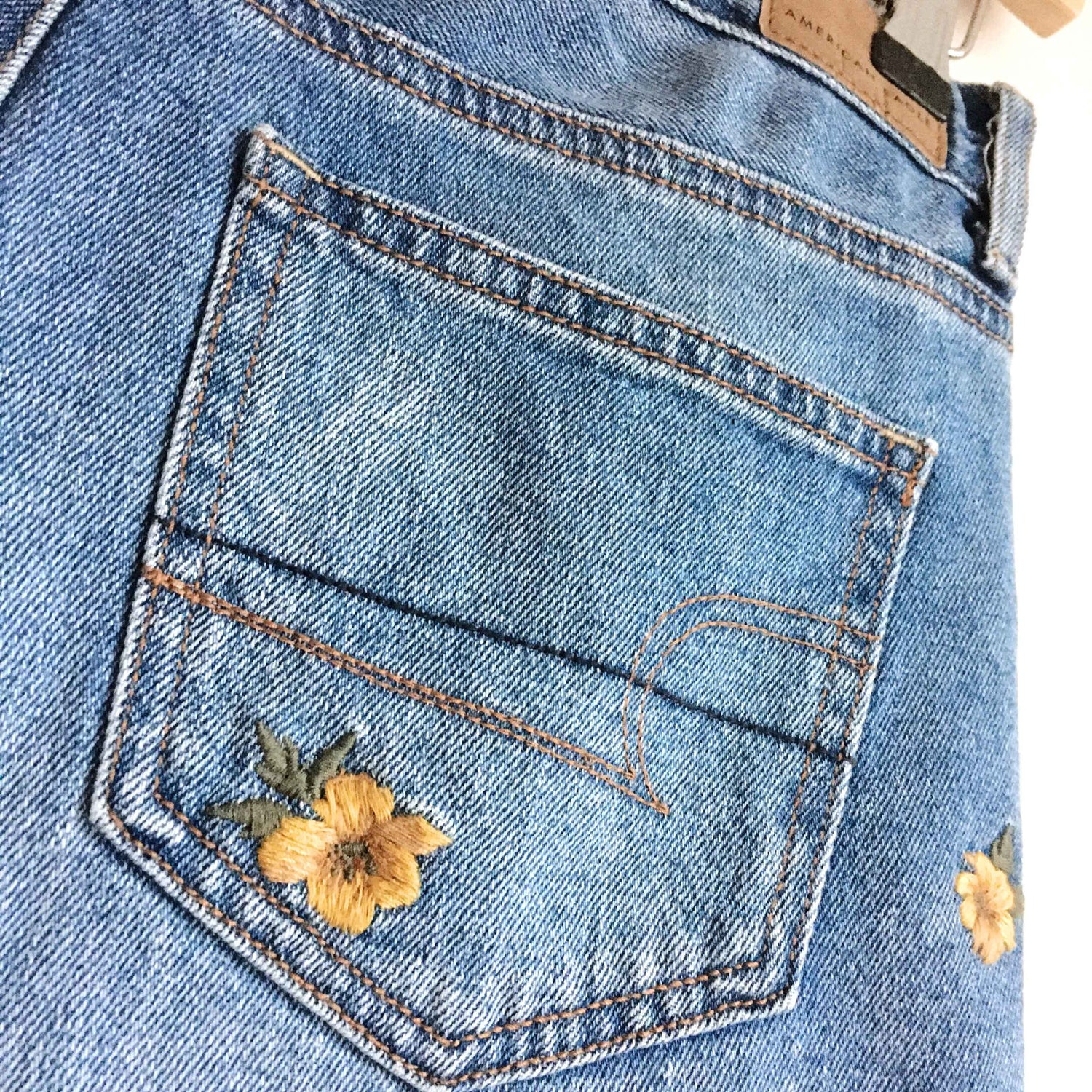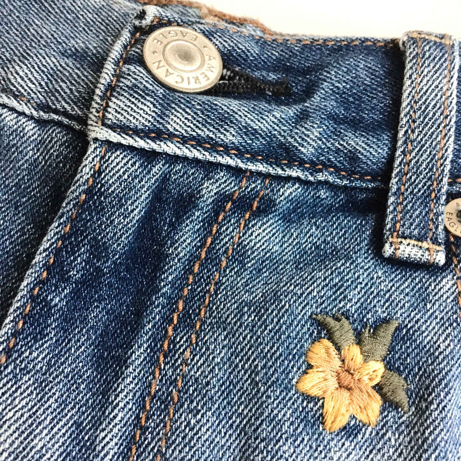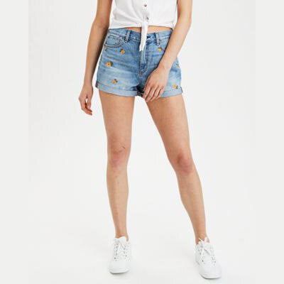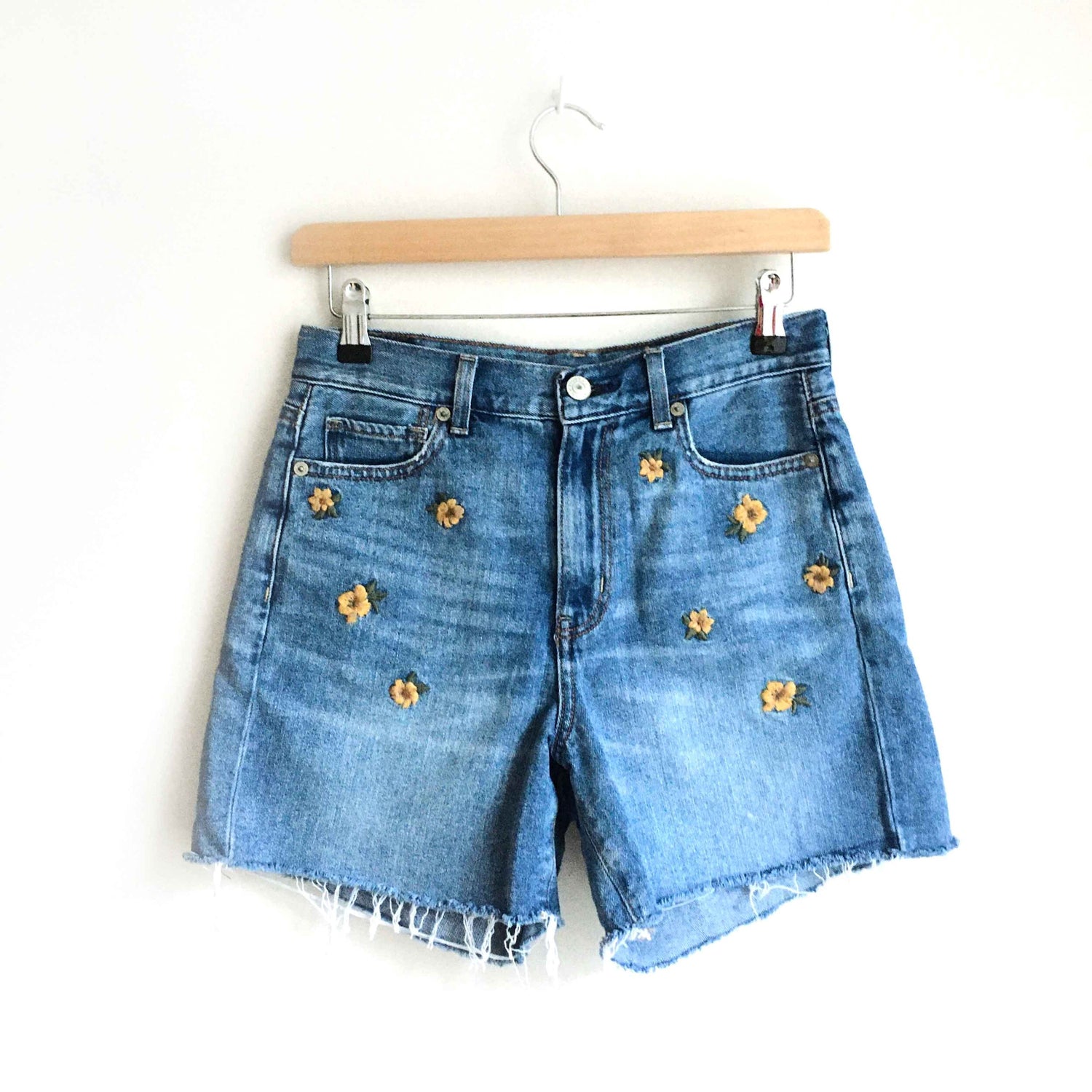 Item Description: These ‘mom’ shorts from American Eagle are all sorts of fun - with a raw edge hem, made to be worn long or turned up, and yellow daisy embroidery all over. 95% cotton 5% polyester