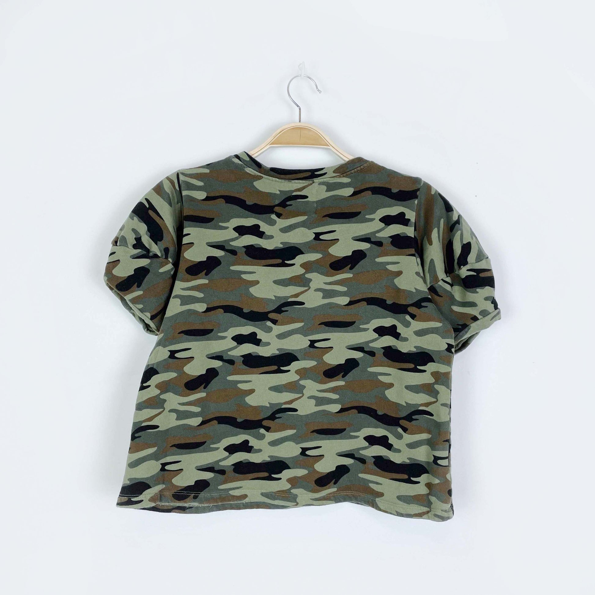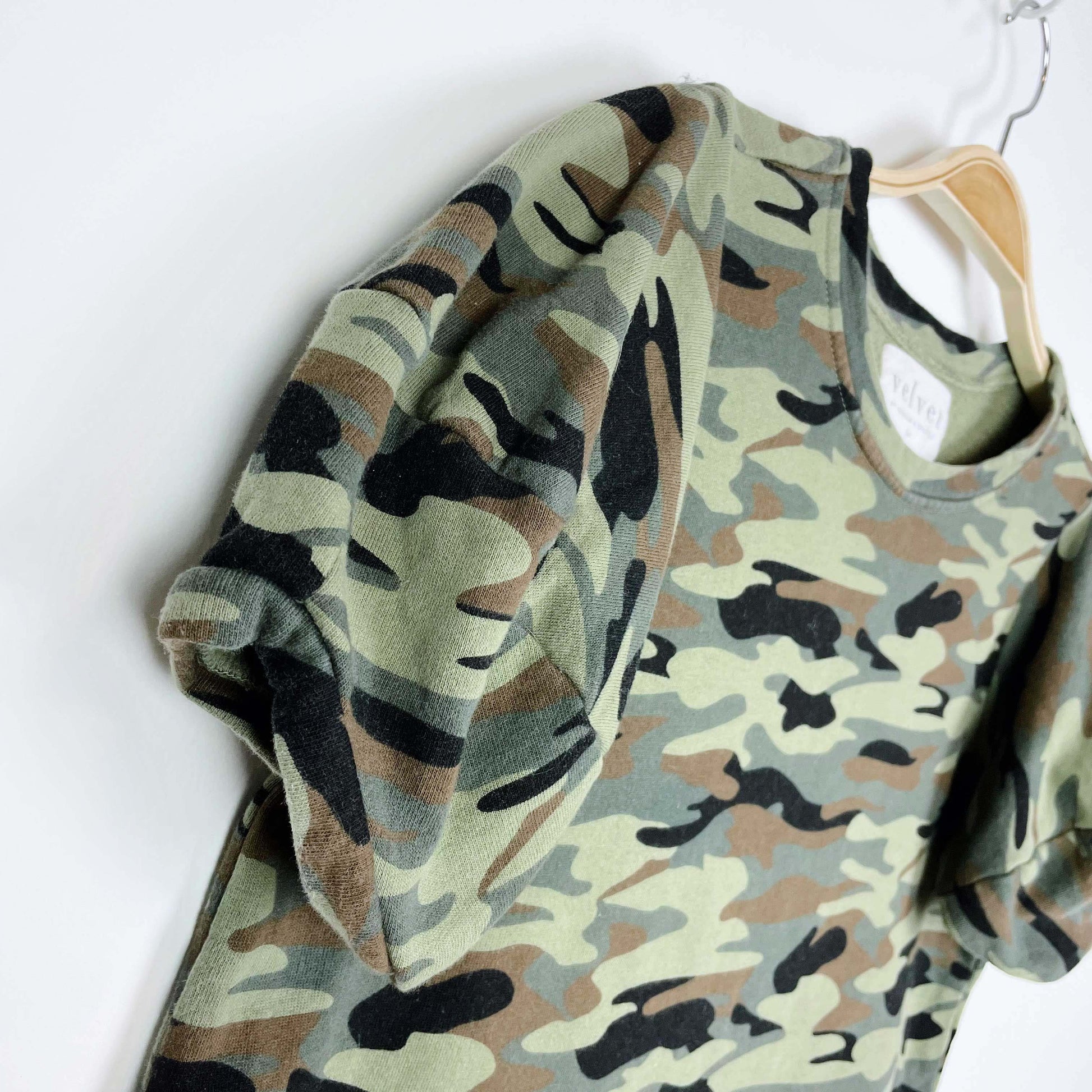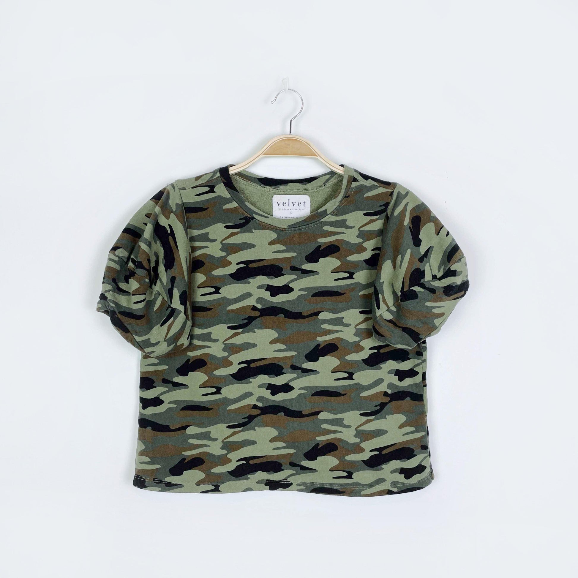 anthro velvet by graham & spencer camo short sleeve sweatshirt - size xs