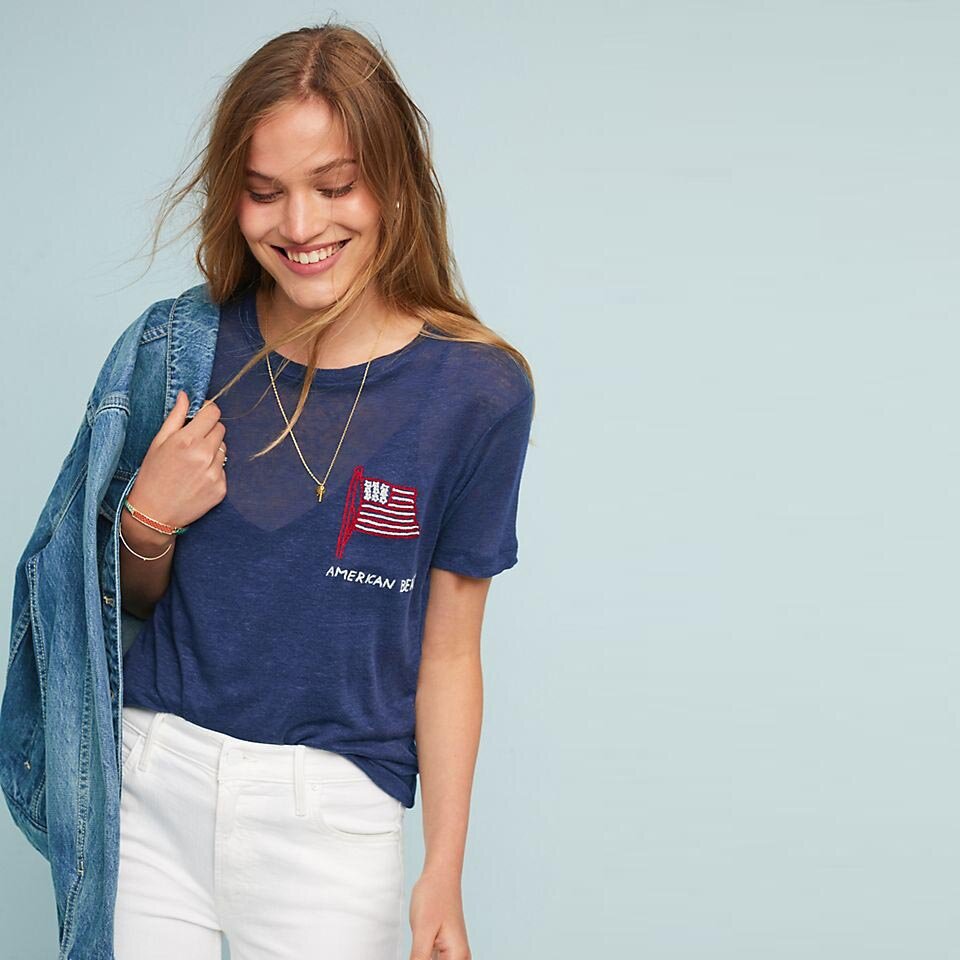 Anthropologie Bannerday American beauty linen tee - size 2 (Medium)
