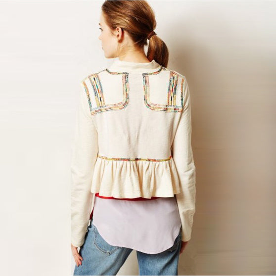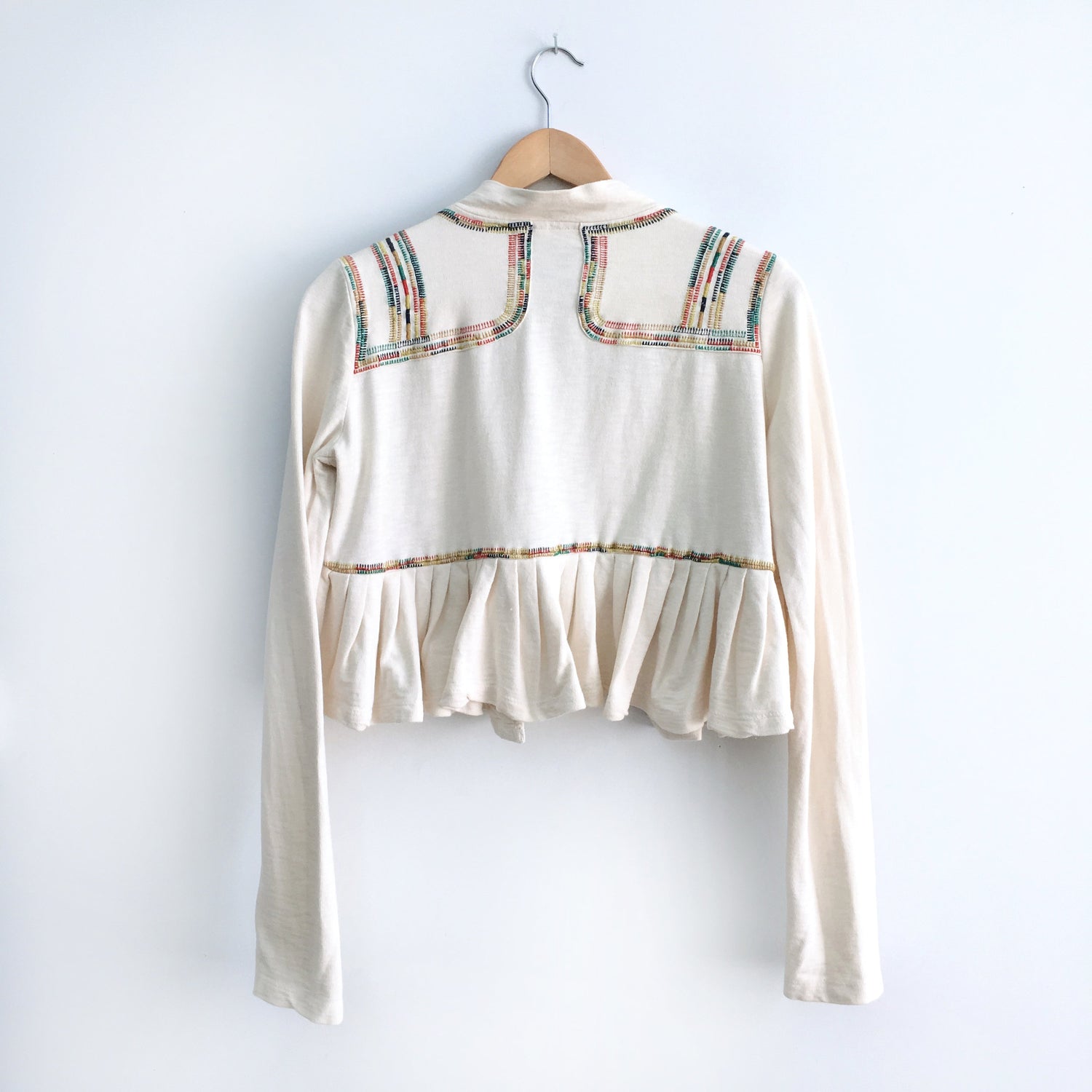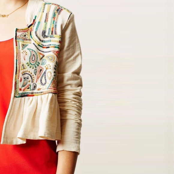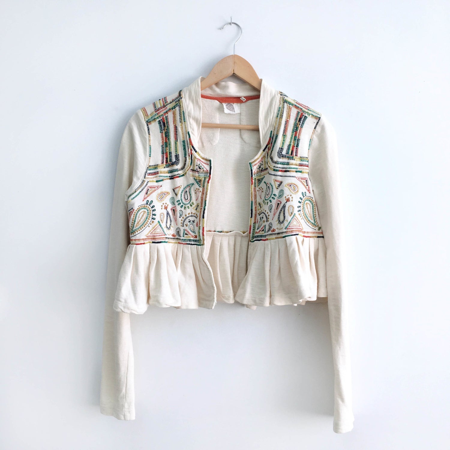Item Description: This gorgeous classy boho peplum crop jacket from Anthropologie’s Lilka brand is a Spanish inspired dream. 100% Cotton