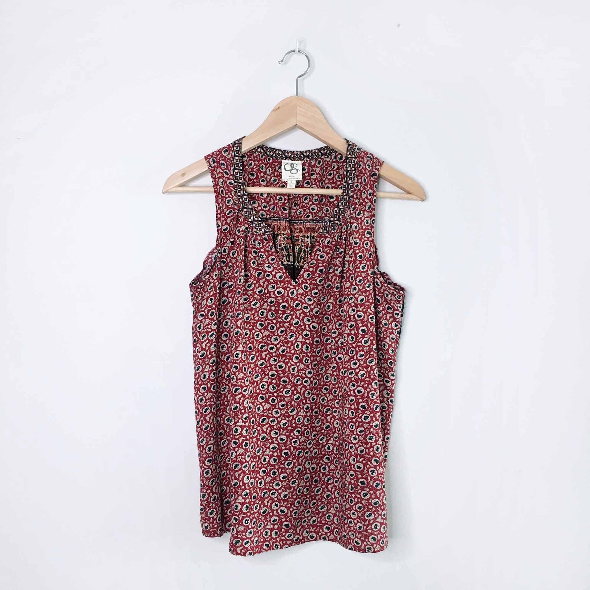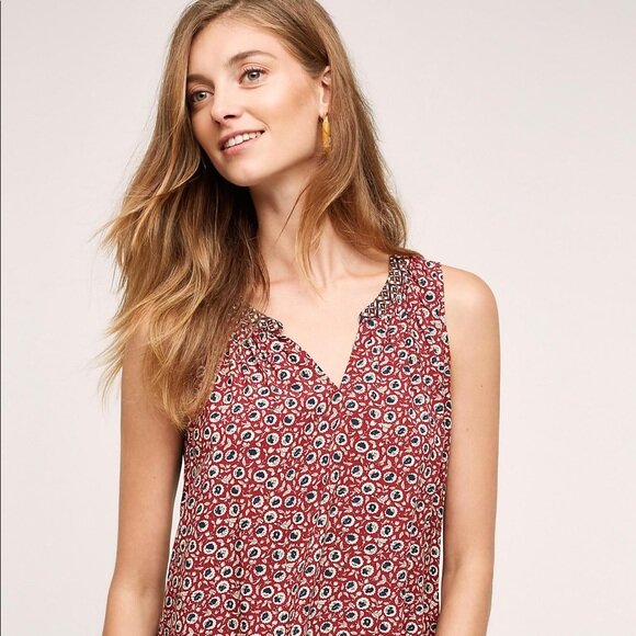 Item Description: This gorgeous mix print top from Anthropologie’s One September features a modest v-neck front, and accordion swing back in a sleeveless silhouette. 100% rayon