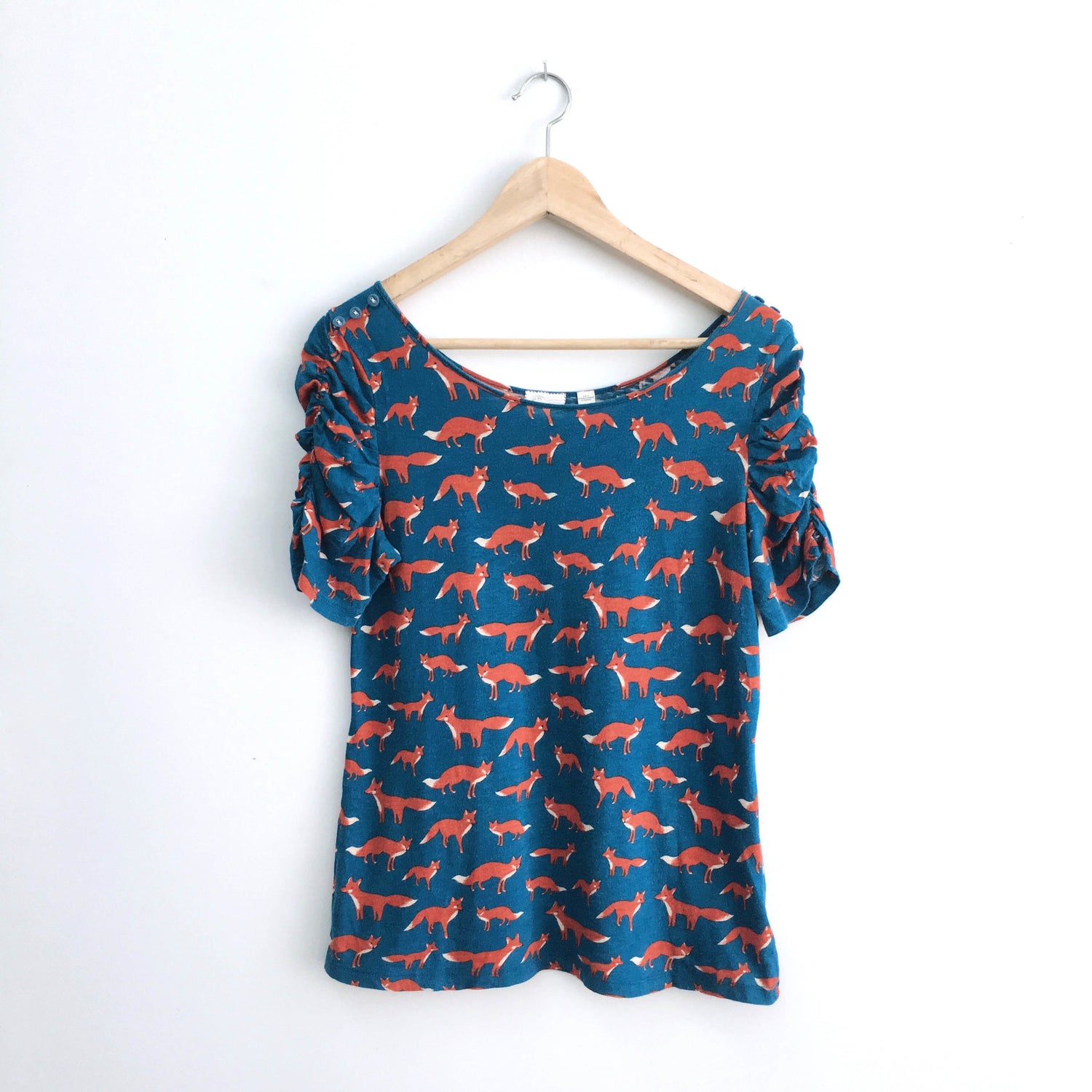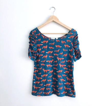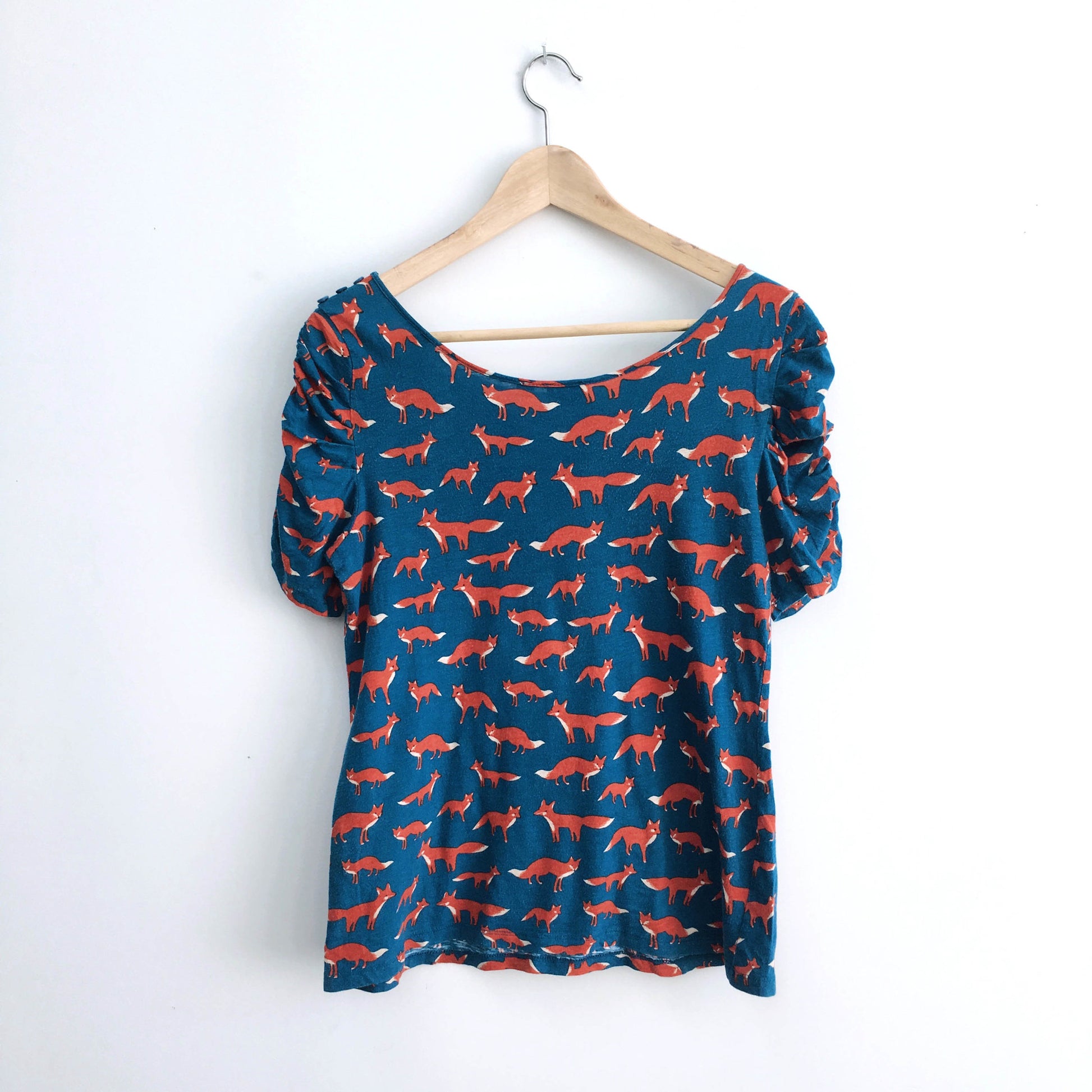 Item Description: This cu-tee from Anthropologie is highly sought after for it’s adorable foxes, and commonly seen on celebrities and hit shows. Rare and hard to find, this one is in GOOD condition, with minor signs of wear.