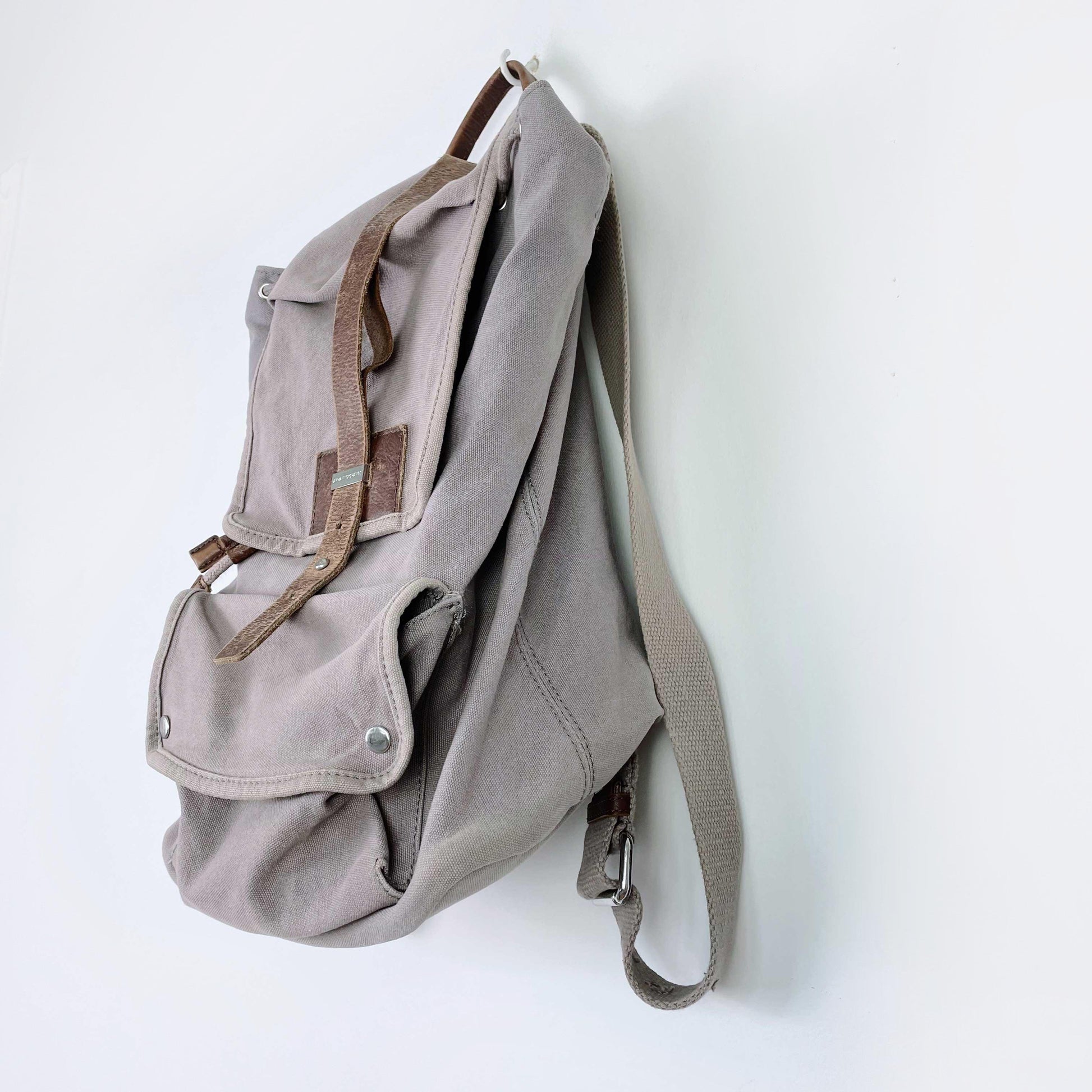 armani exchange canvas camp backpack w leather trim