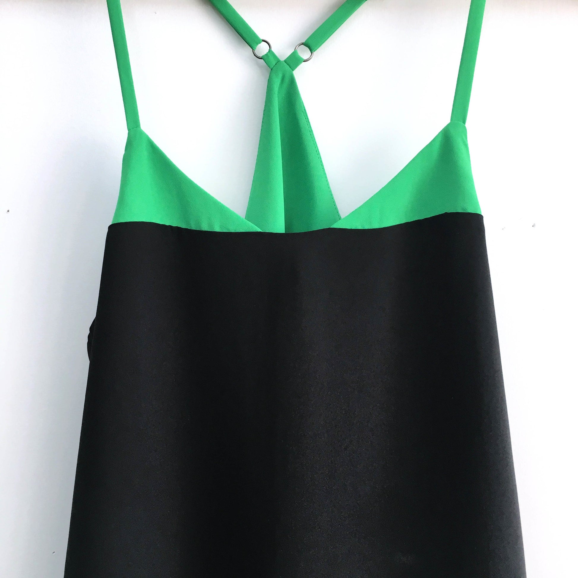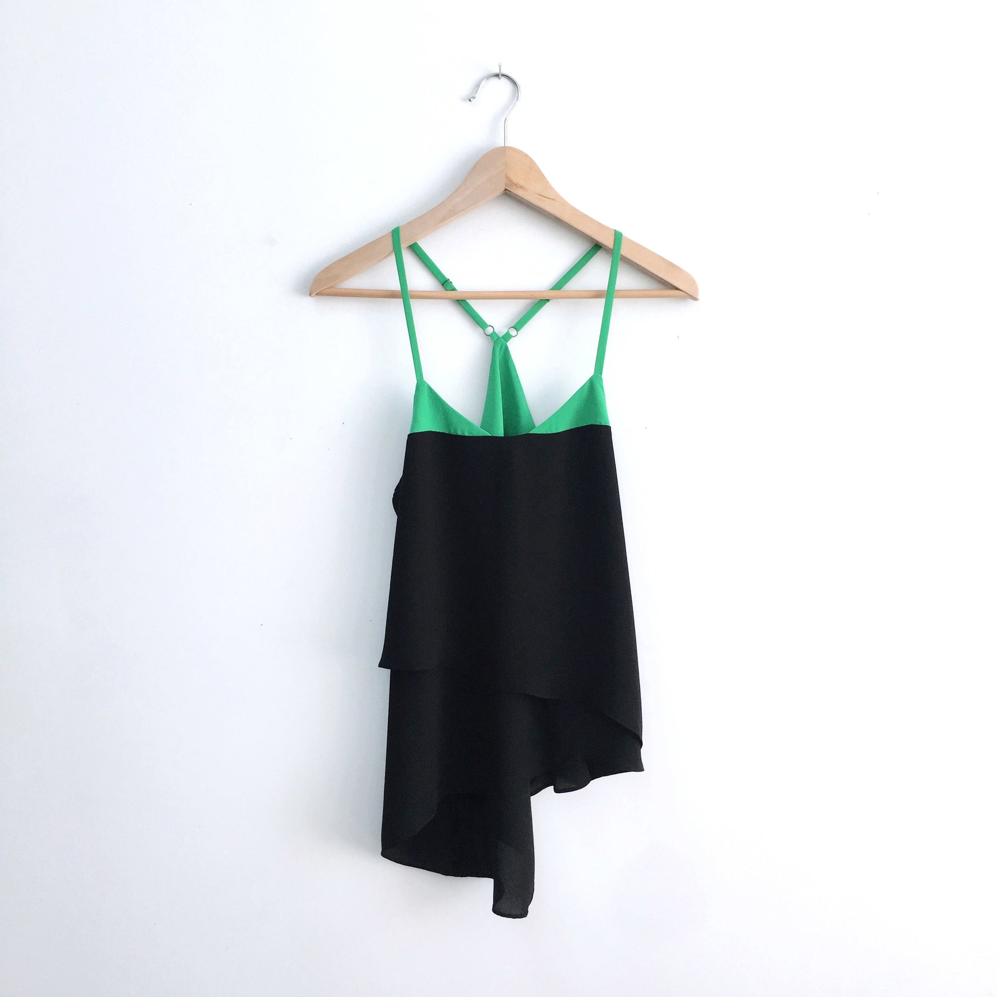 Item Description: The colour-blocking on this chiffon tank is DREAMY - layers upon layers make this fun loving tank your next favourite. Adjustable straps. Lining. 100% polyester