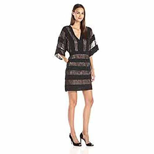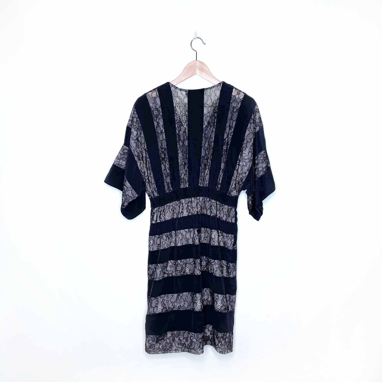 bcbg harbor black nude silk lace combination kimono dress - size xs