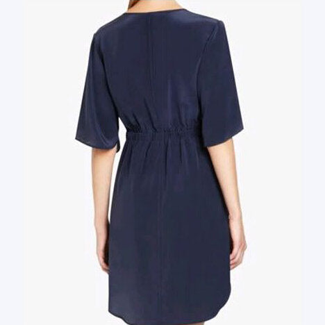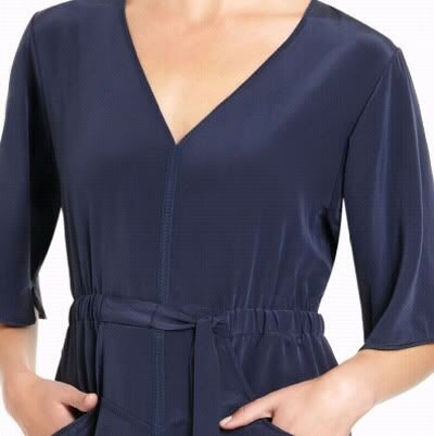 Item Description: This silk kimono style dress from BCBG features an elastic cinched waist with tie, deep front pockets and a hi lo hem - this dress is perfect for tall ladies who want to keep it covered. 100% silk