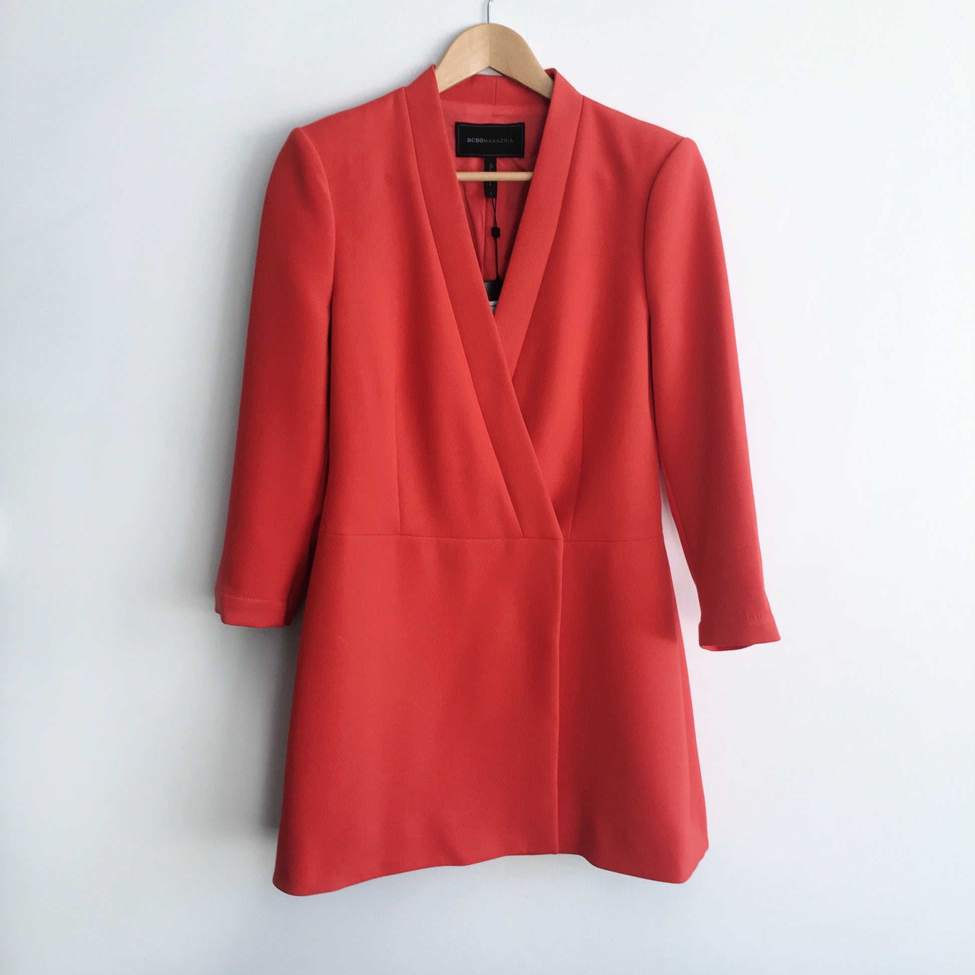 Item Description: Walk with a bold, confident strut in this sleek, menswear-inspired double-breasted jacket dress from BCBG.