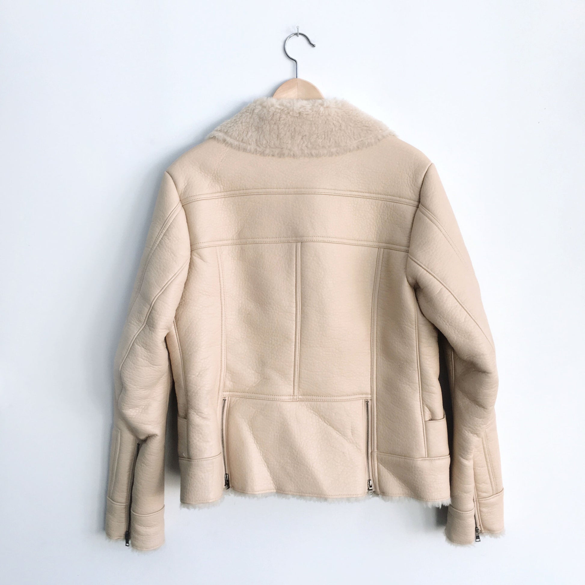 Item Description: This stylish faux-shearling aviator jacket from BCBG is just unreal. The front deep pockets are lined like the inside of the jacket to keep your hands warm, the fur is actually made from wool so it’s extra warm, and since it’s not real shearling, the exterior is super weather proof! 53% polyester 28% acrylic 19% wool Colour: Oatmeal