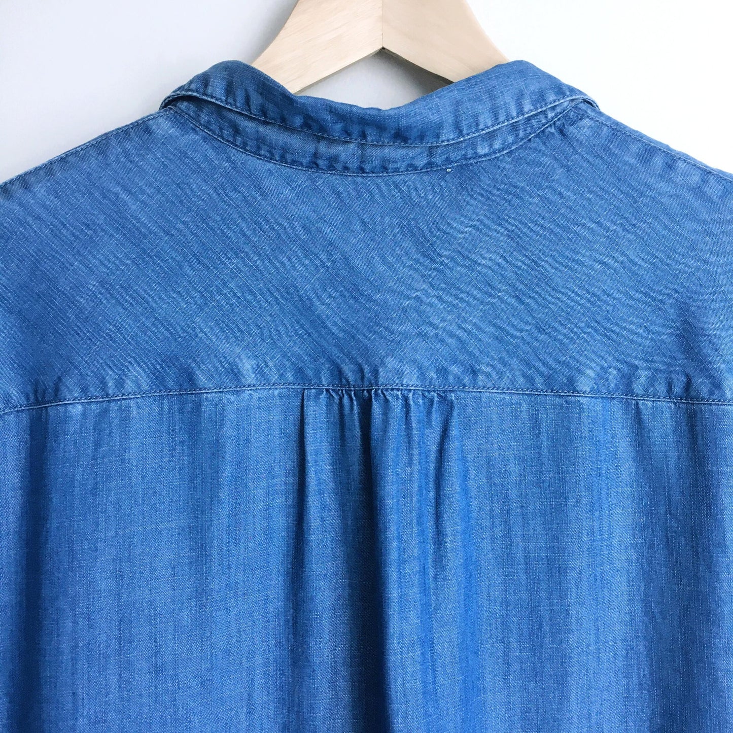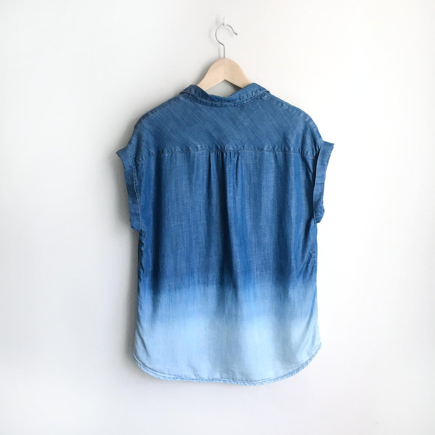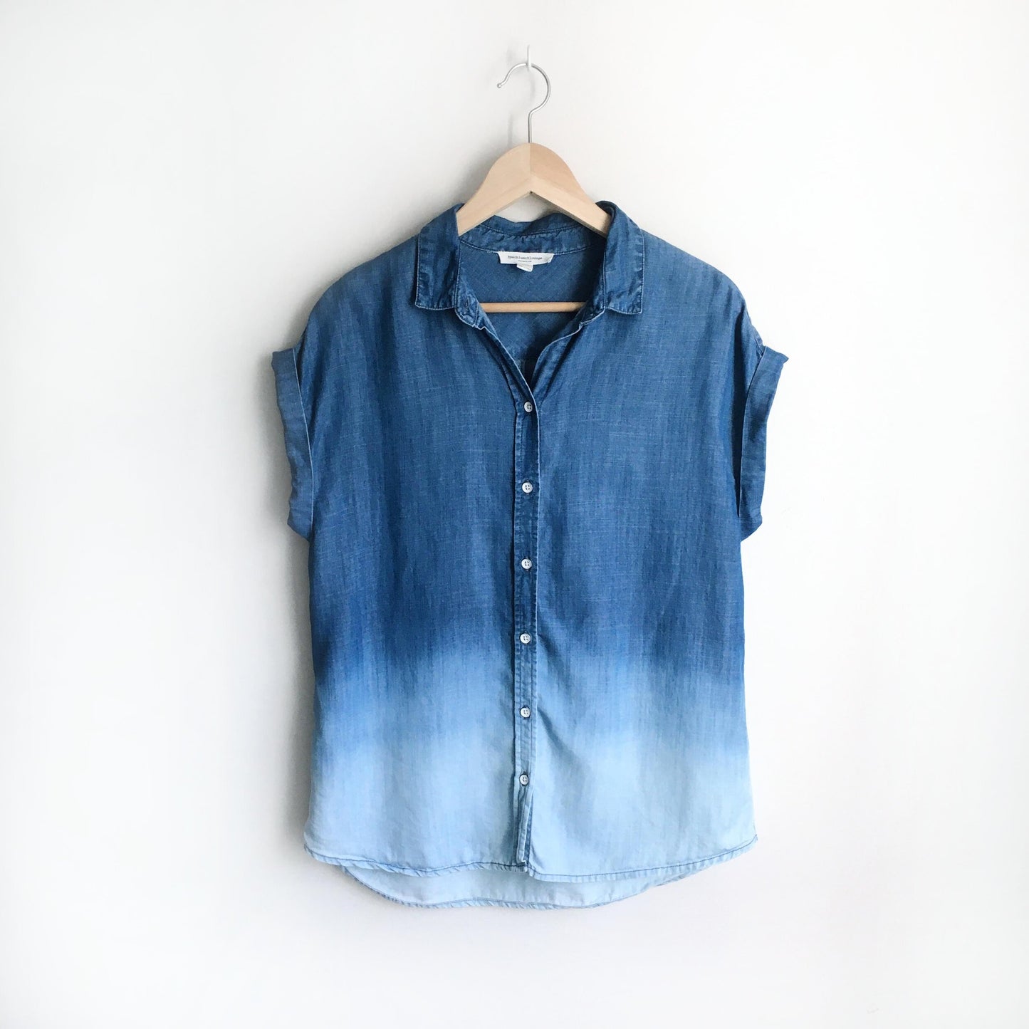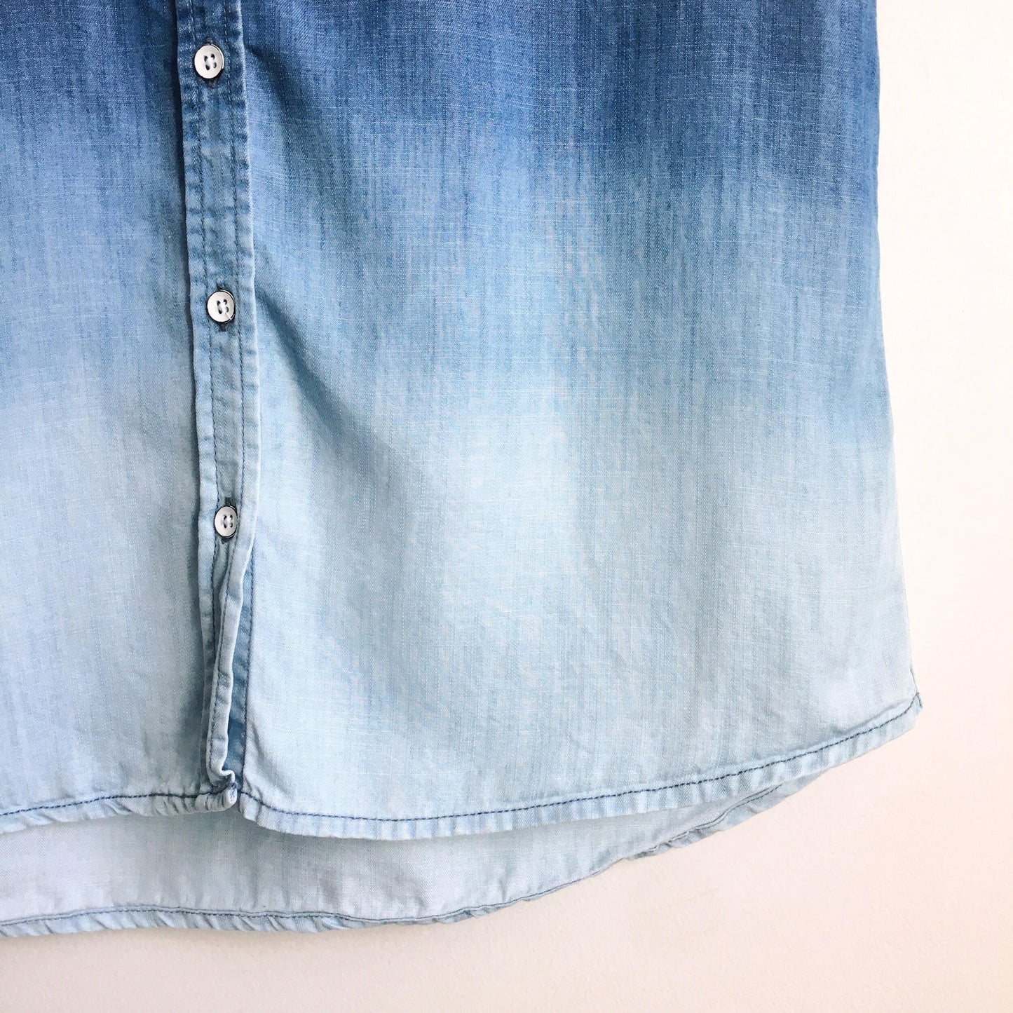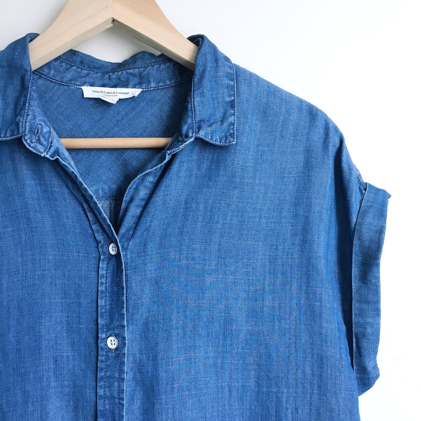 Item Description: This lightweight chambray button down from beach lunch lounge has all the chill vibes in an effortless top. The ombre dipped hem and rolled dropped shoulders add a touch of style to this must-have. 100% lyocell