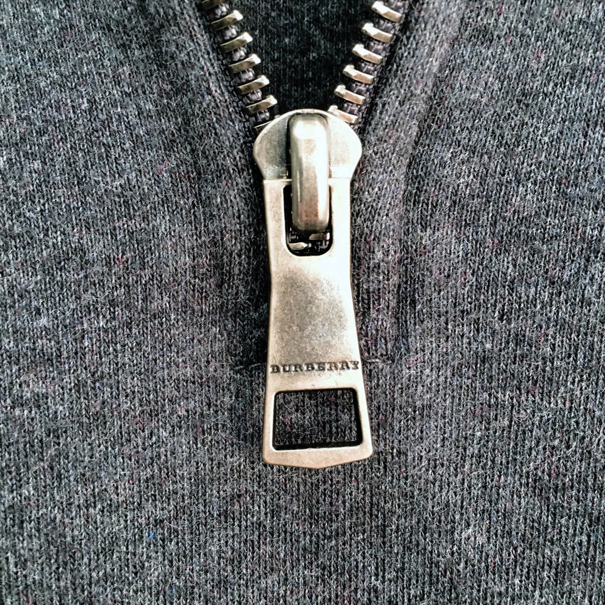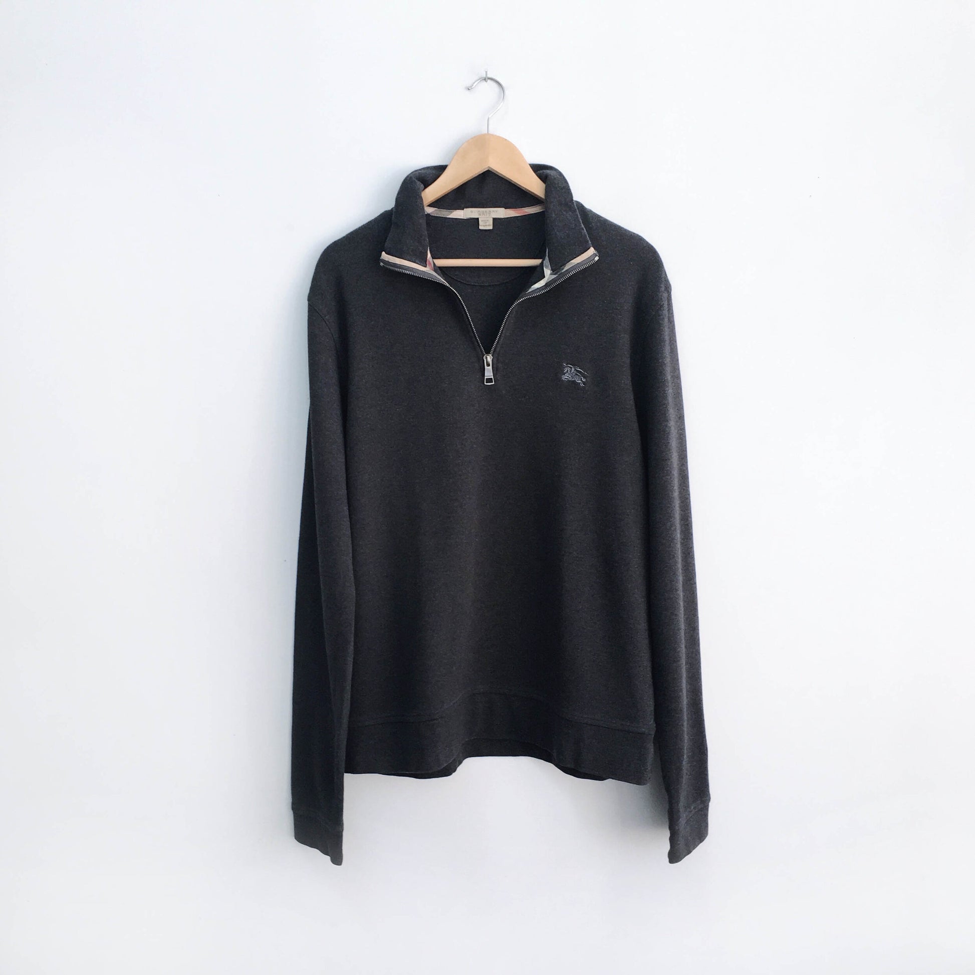 Item Description: This staple 1/4 zip pullover from Burberry features the classic Nova Check trim, front embroidered logo and branded zipper pull. 100% cotton