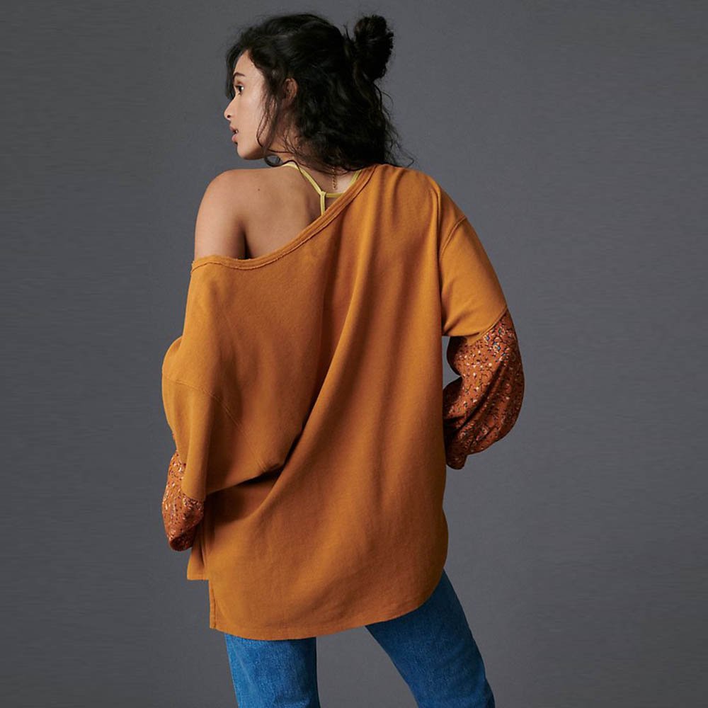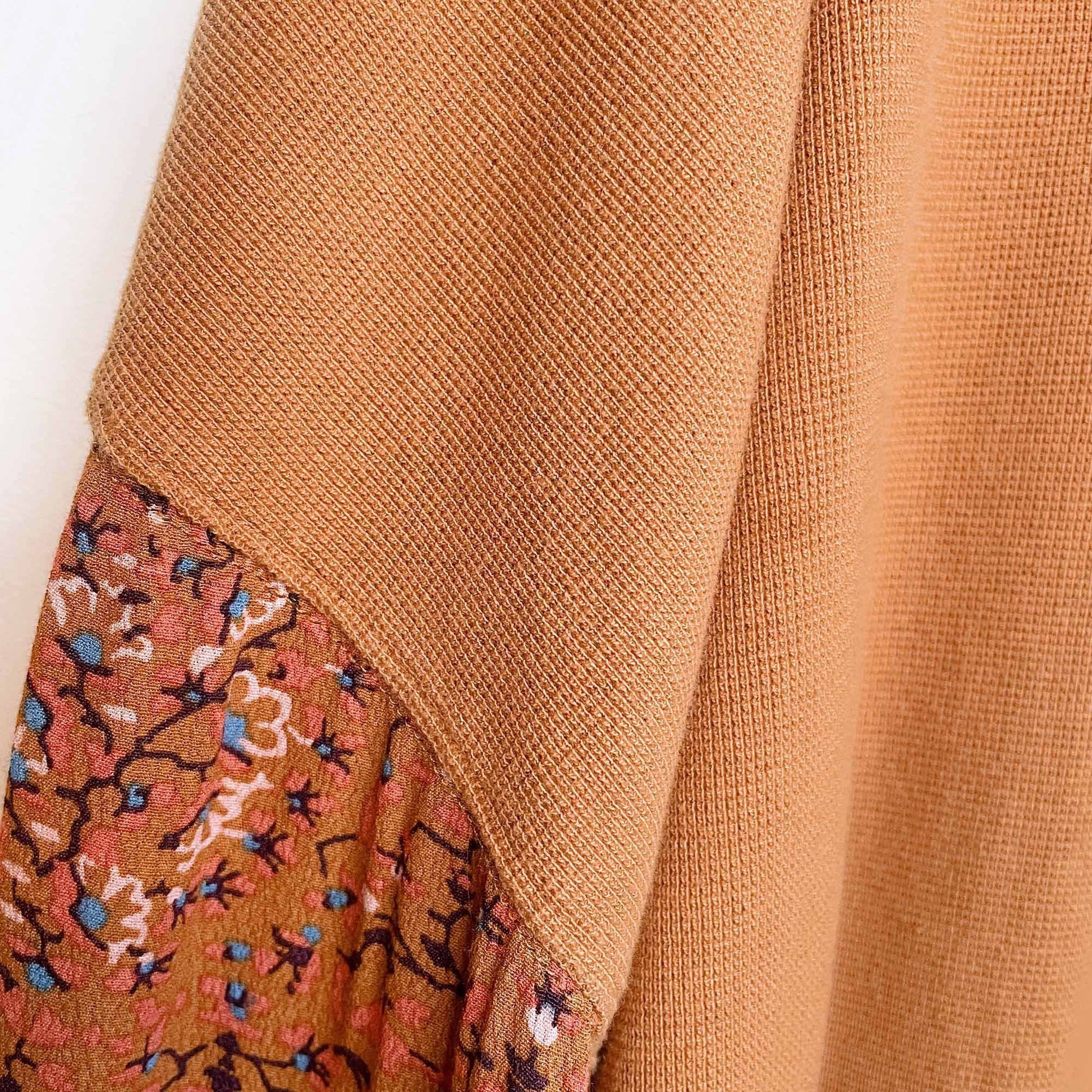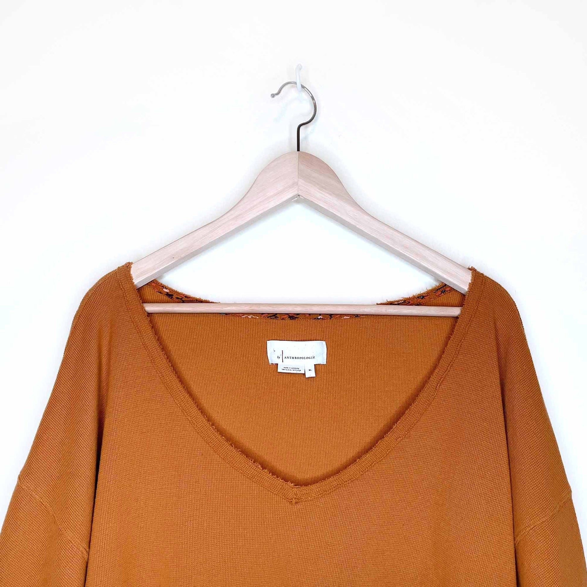by anthropologie annette v-neck waffle top with floral sleeve - size xl
