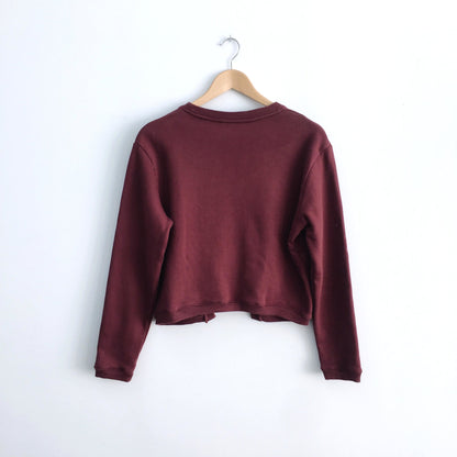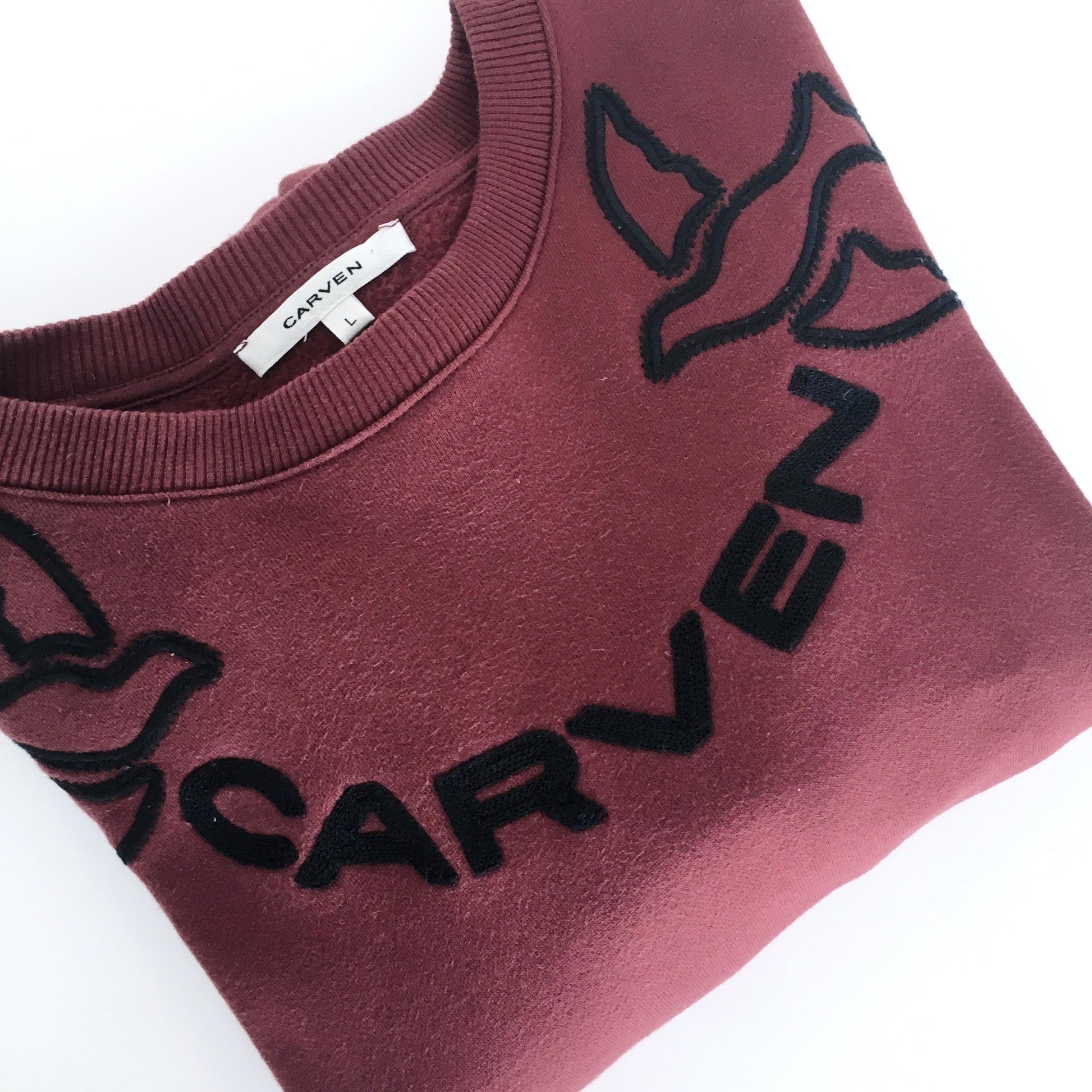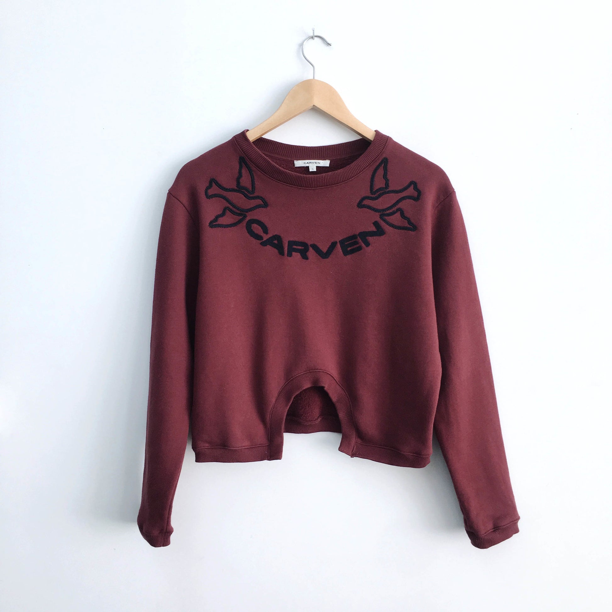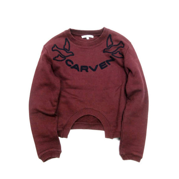 Item Description: An iconic piece from Carven, this embroidered logo sweatshirt with flying birds on it is featured in a beautiful colour combination of deep red and navy.