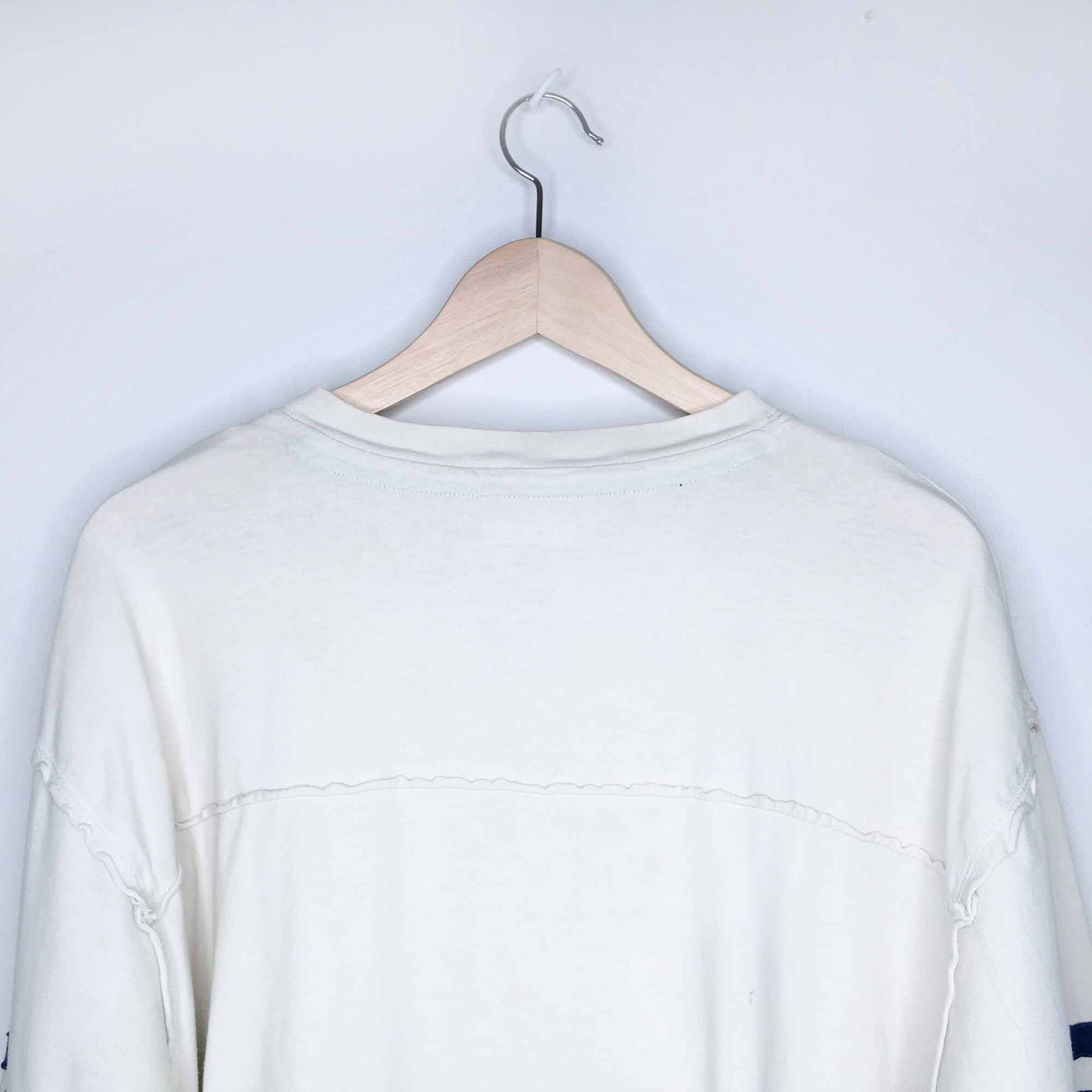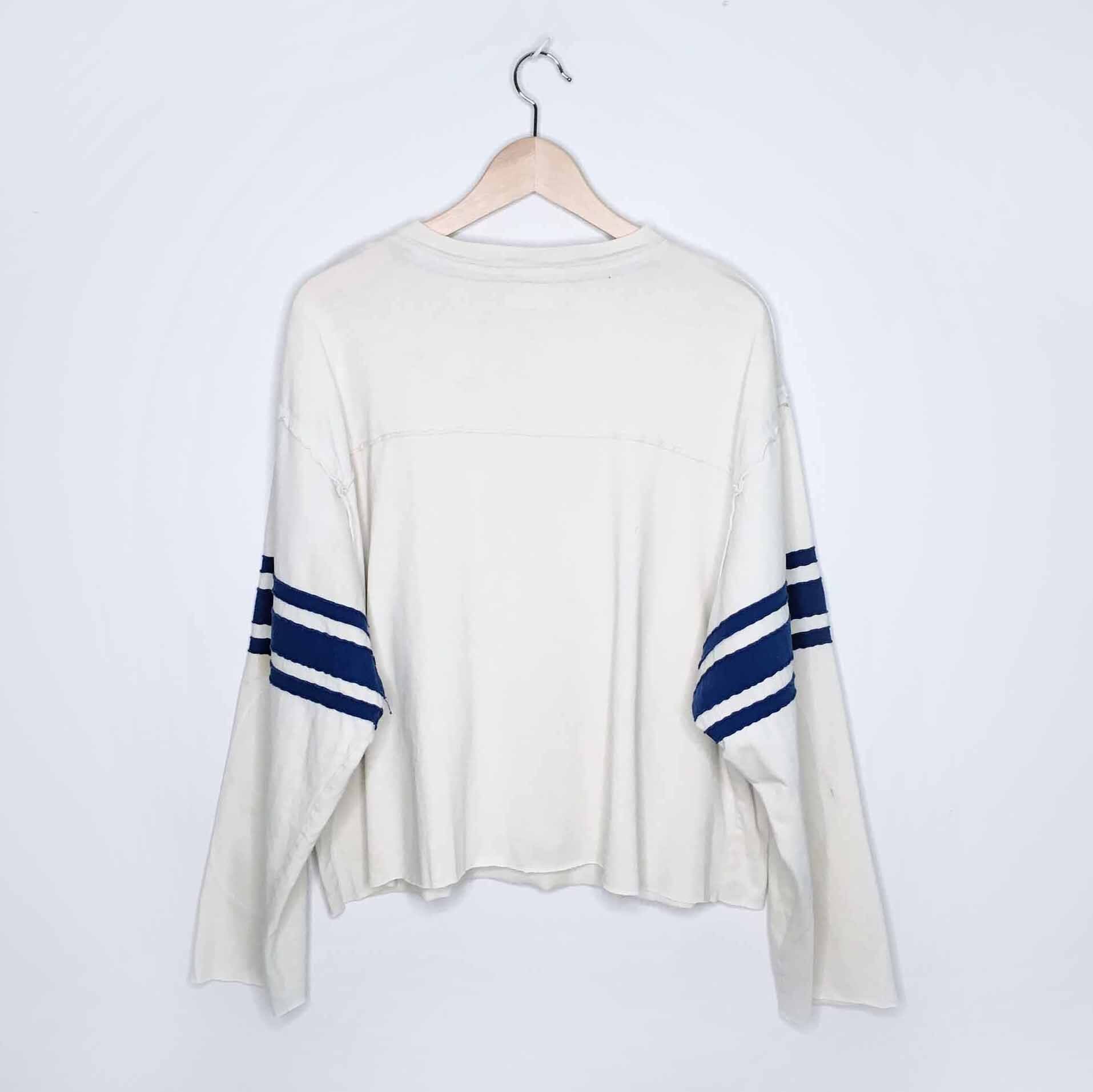 Item Description: This vintage style maple leafs jersey tee is self cropped for a more alluring fit on a women, but with an oversized vibe.100% cotton