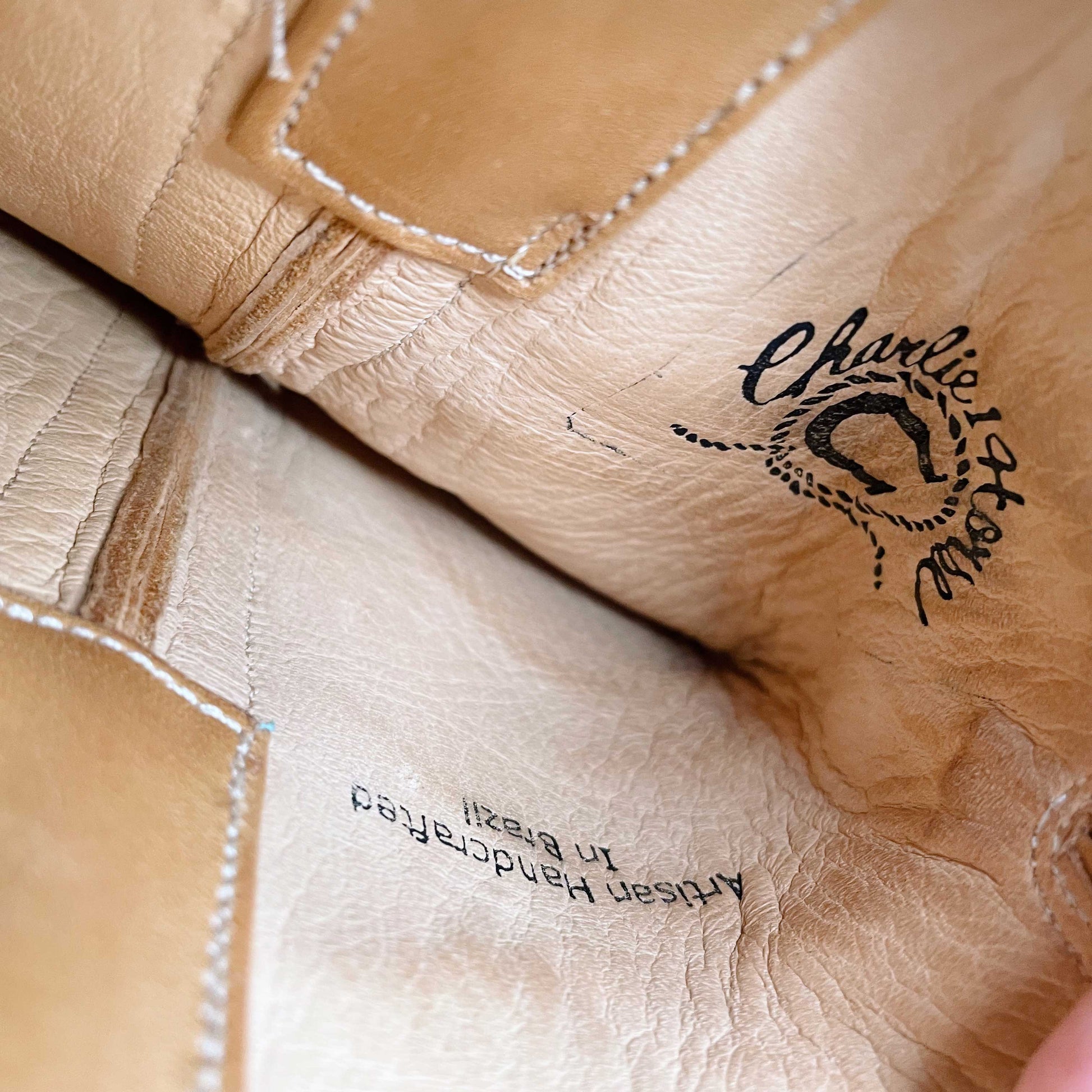 charlie 1 horse leather heeled rancher cowboy boots - size 8.5