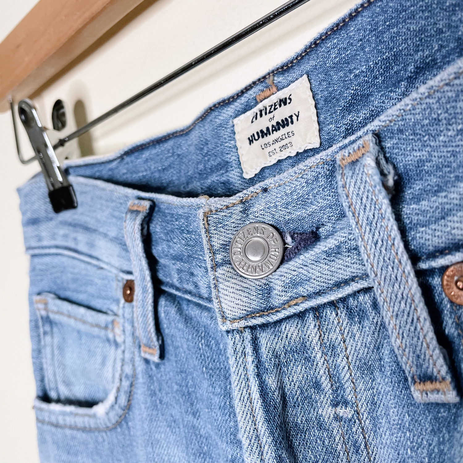 Item Description: Just rigid enough to look vintage, this high-rise pair of Citizens of Humanity jeans flatters through the hip and thigh and is finished with a classic slim leg. Roll the hem for a lived-in, boyfriend look. 77% cotton 23% rayon