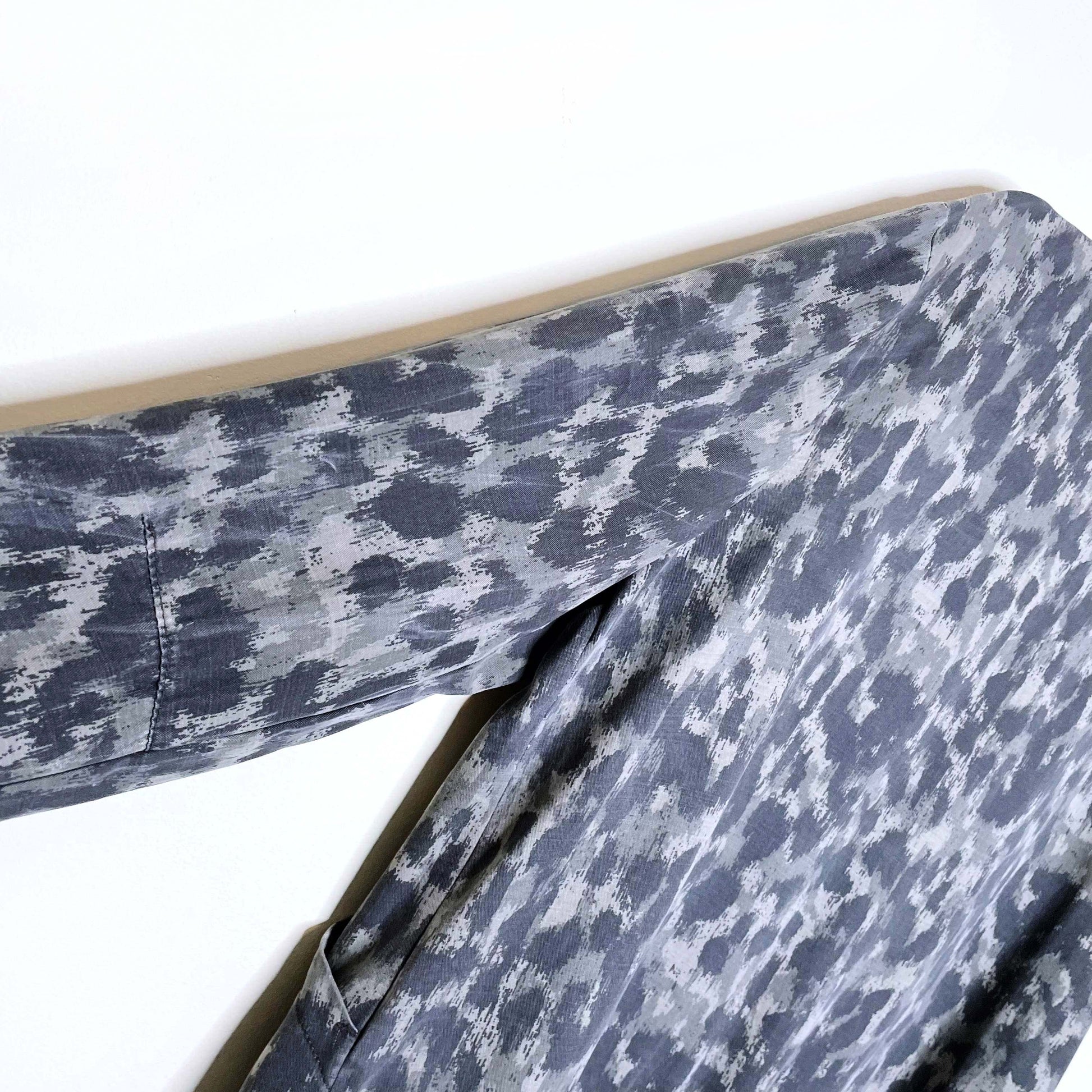 Item Description: This lightweight jacket from Cloth & Stone features an abstract camo print, in a bomber cut with a drapey feel. 100% tencel