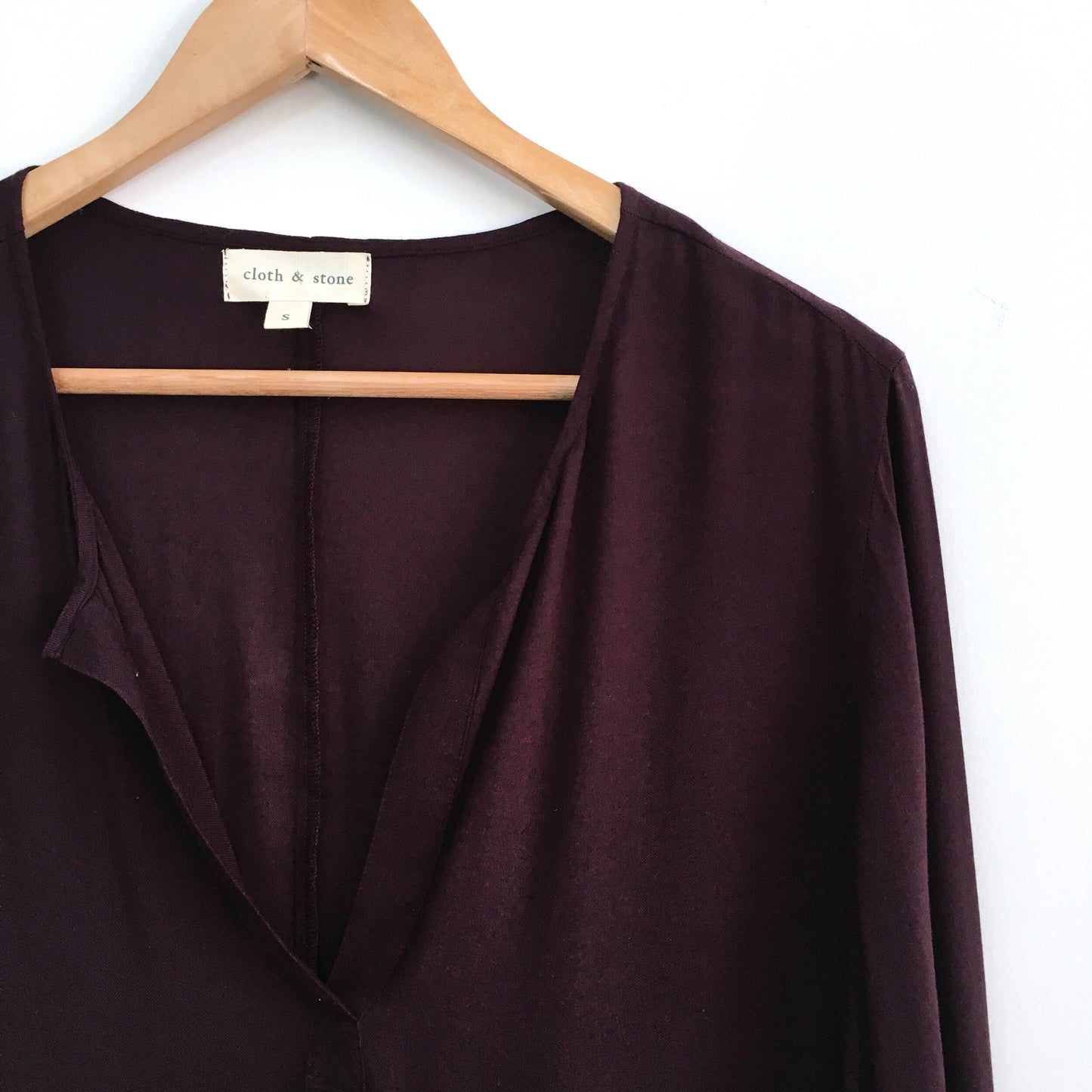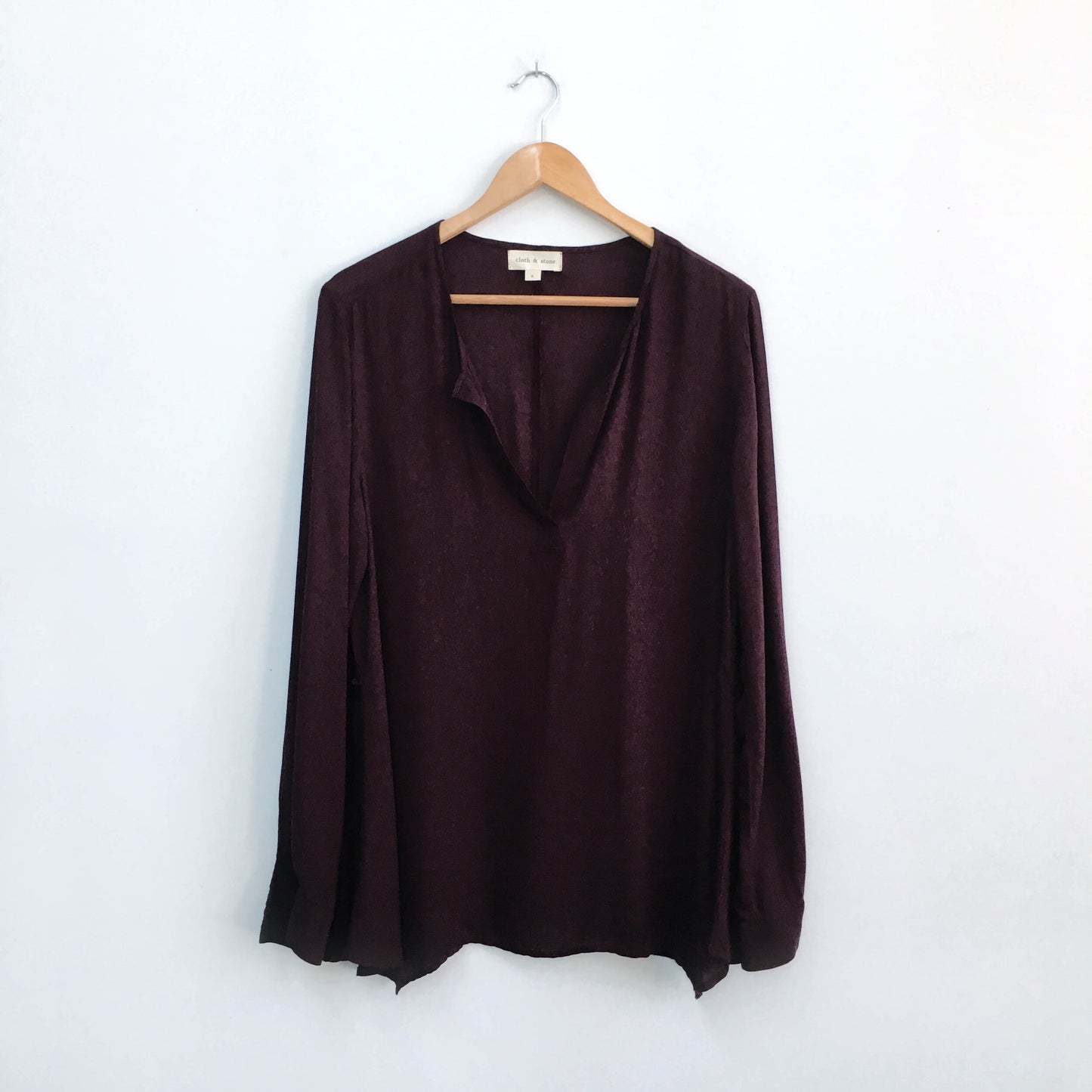 Item Description: A classic popover shirt from Cloth & Stone with a slit v-neck and button cuffs. 100% rayon. Found at Anthropologie.
