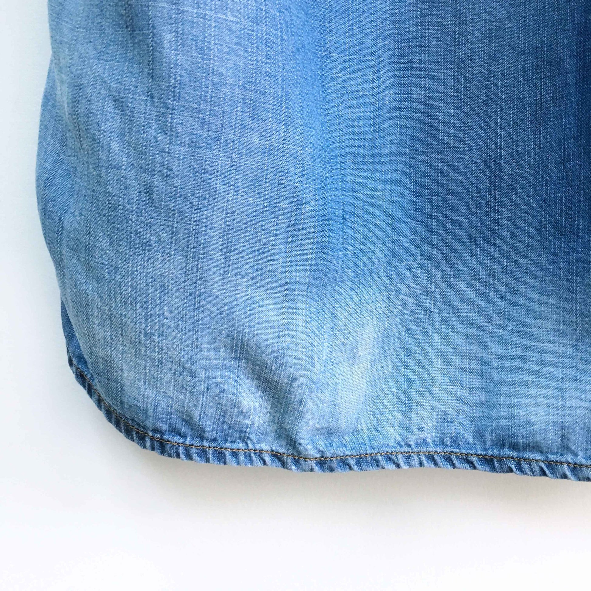 Item Description: This chambray dress from Anthropologie - Cloth & Stone features a lace up front, 3/4 sleeves with button tie and side pockets. 100% tencel